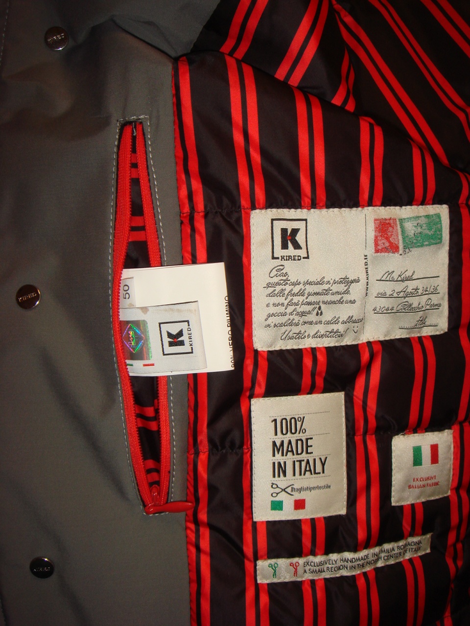 Продается новое пуховое мужское пальто бренда KIRED( вторая линия KITON) превосходного исполнения, плотная ткань cерого цвета, ветрозащитная, водоотталкивающая, STORM SISTEM, простеганный изнутри, логотип, классический воротник, отстегивающийся полноценный капюшон с утяжкой, однобортная модель, двухходовая молния и кнопки с логотипом бренда, наружные боковые прорезные карманы, два внутренних кармана на молниях, внутри на гусином пуху 90/10, манжеты отделаны клапанами на кнопках, состав: 54% шерсть LORO PIANA, 46% нейлон, все бирки прилагаются , гарантированный 100% оригинал, размер 50(IT), производство Италия .