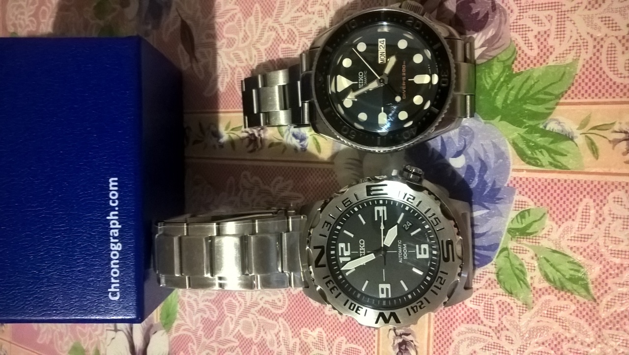 Очередная покупка под заказ для товарища,часы Seiko SRP441 из магазина Хронограф.ком.Корпус часов как на Монстре,но заводная головка к сожалению не закручивается,водонепроницаемые 100 метров.Для сравнения фото с моими SKX 007.На 007 метки в темноте светятся ярче.Обошлись в 6100 грн.в переводе с доллара.