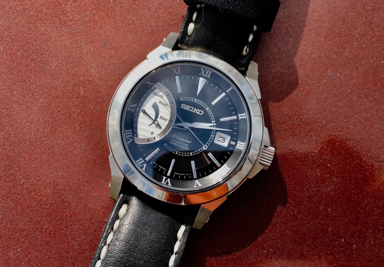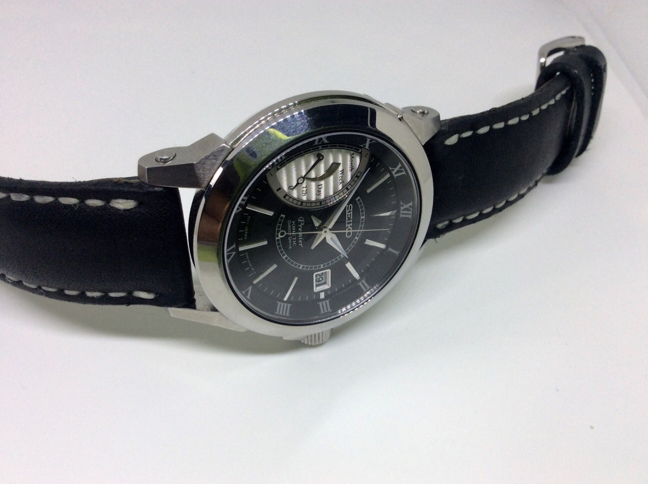 Предложу к продаже японские часы Seiko Premier kinetic direct drive SRG001P2. Фишкой этих часов является автокварцевый механизм, который заряжается от генератора энергии с вращающимся сектором (почти как на механике с автоподзаводом). Также их можно "заряжать" вручную, просто вращая ЗГ. Полностью заряженного аккумулятора хватит более, чем на месяц автономной работы. Чтобы полностью зарядить аккумулятор достаточно около четырёх-семи дней обычного ношения часов на руке. На сколько заряжен аккумулятор подскажет ретроградный указатель заряда.
