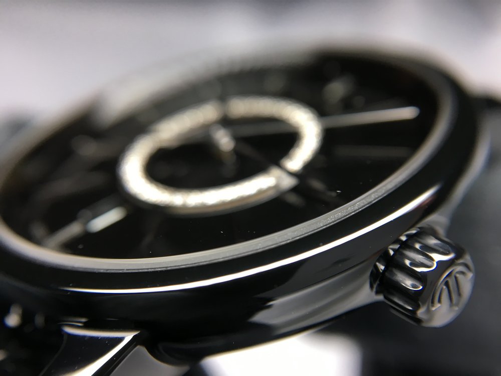 Монолитный керамический корпус, циферблат украшен 36 бриллиантами общим весом 0.104 ct