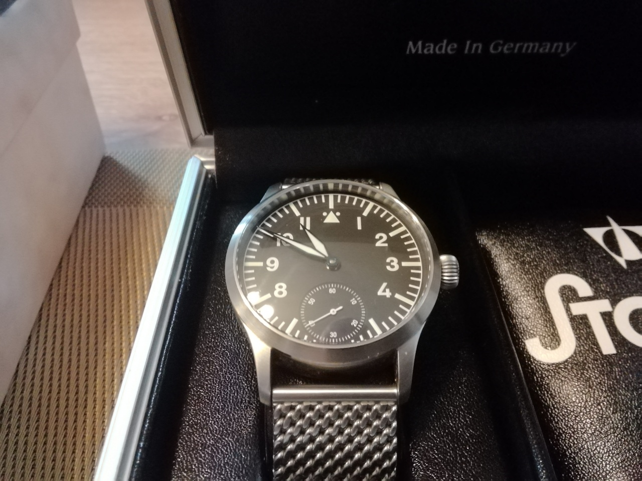 Расстанусь с прекрасным экземпляром от Stowa. В 2013 году приобретал лично на мануфактуре в Энгельсбранте из рук Луизы. Соответственно комплект полнейший, носил не часто, состояние А поставил из за царапины на безеле (вполне профильной-под капотом самолёта получена). В остальном корпус и браслет без следов эксплуатации.Не полировал. Механизм ЕТА, идут в КОСК. Классные часики, но полностью закрываю тему "пилотов".