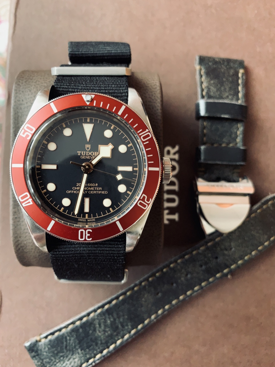 Продам Tudor Black Bay Red. Мануфактурник, в отличном состоянии, полный комплект с коробкой и документами. Небольшие царапинки только на боковых, полированных поверхностях.