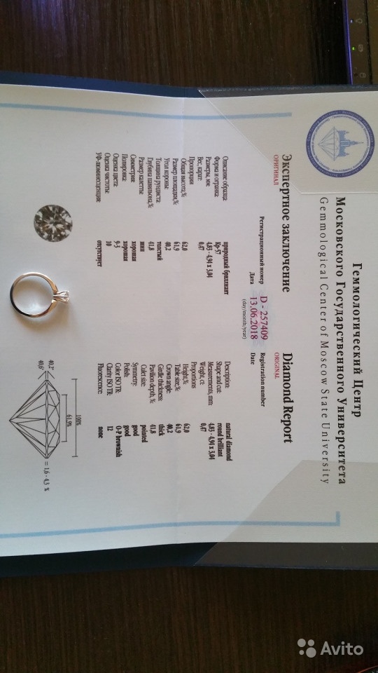 Помолвочное золотое кольцо с бриллиантом 0.47 карата. Новое.