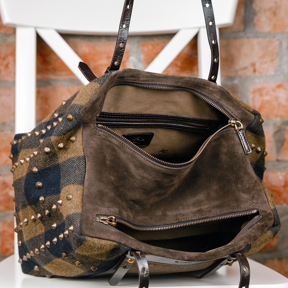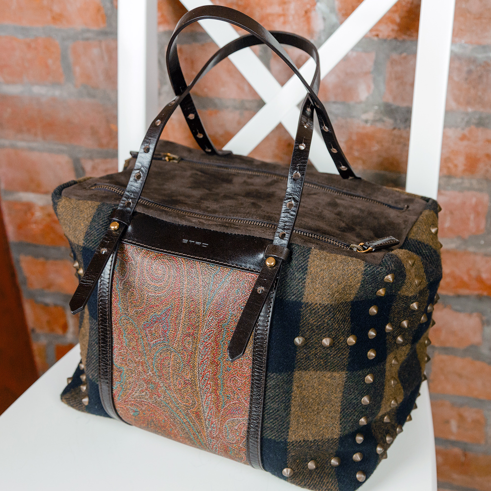 Очень стильная сумка! Масса оригинальных решений и "изюминок" в одной вещи! Необычное сочетание материалов! Универсальный размер - очень удобна как сумка на каждый день, может использоваться и для спорта, и для небольших поездок! Два независимых отделения! Легкая, необычная, модная! Моментально узнается Etro - но сразу видно что это какая-то необычная модель!
