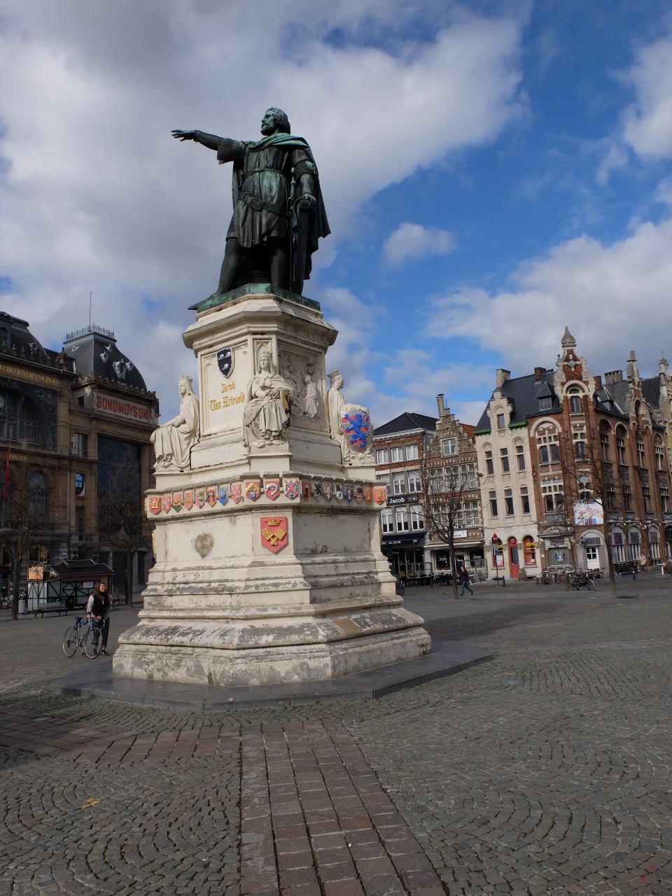 Помимо знаковых мест обратили на себя внимание какой-то товарищ, призывающий идтить куда-то в духе Ленина, собор с половинкой колокольни (денег не хватило, видать, на какой-то неплановый мост ушли), местная царь-пушка, без всякого пиетета обозванная Дулле Грит (Безумная Маргарита), такого, сомнительно-европейского цвета