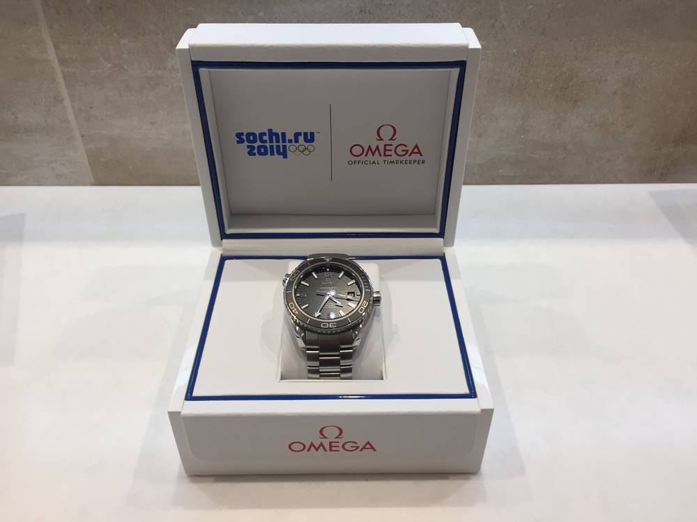 Стильные часы OMEGA Seamaster Planet Ocean 600M воздают должное не только историческим традициям дайверских часов OMEGA, но и зимним Олимпийским играм 2014 года в Сочи. На их черном циферблате, защищенном устойчивым к царапинам сапфировым стеклом, выделяется окошко указателя даты в положении «3 часа». Корпус диаметром 45,5 мм из нержавеющей стали с браслетом из нержавеющей стали дополнен черным керамическим дайверским безелем, вращающимся в одном направлении. Поскольку дизайн часов навеян цветами флага Российской Федерации, на дайверской шкале присутствуют элементы красного и синего цвета. Часы OMEGA Seamaster Planet Ocean 600M, оснащенные гелиевым клапаном, сохраняют водонепроницаемость на глубинах до 60 бар (600 метров / 2000 футов). Часы выпускаются ограниченной серией из 2014 экземпляров. Основу этой модели составляет коаксиальный часовой механизм OMEGA, калибр 8500.