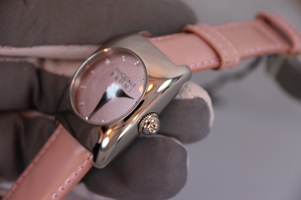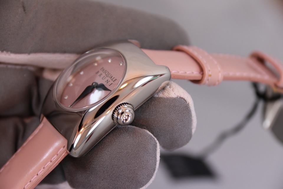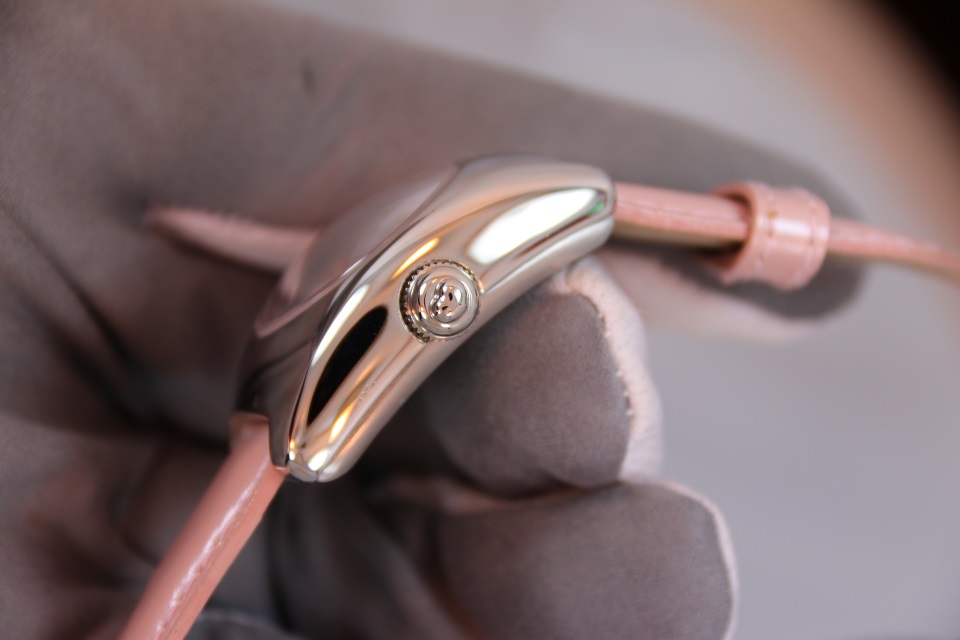 Циферблат: розовый, часовые метки - бриллианты.