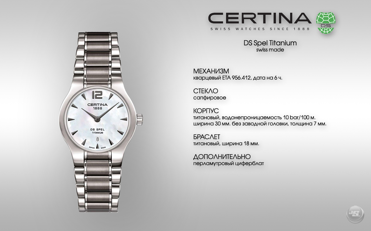 Certina - профессиональный бренд спортивных часов. Часы не только безупречны по своему дизайну, но и обладают бескомпромиссно высоким качеством. Особый спортивный дух пронизывает все аспекты создания часов, от дизайна до разработки технологий производства и философии бренда. Приверженность Certina спортивному духу можно увидеть не только во внешнем виде часов. Она проявляется также в присущем бренду динамизме, стремлении к прогрессу, надежности и выносливости.
