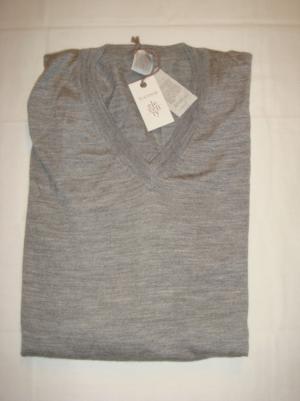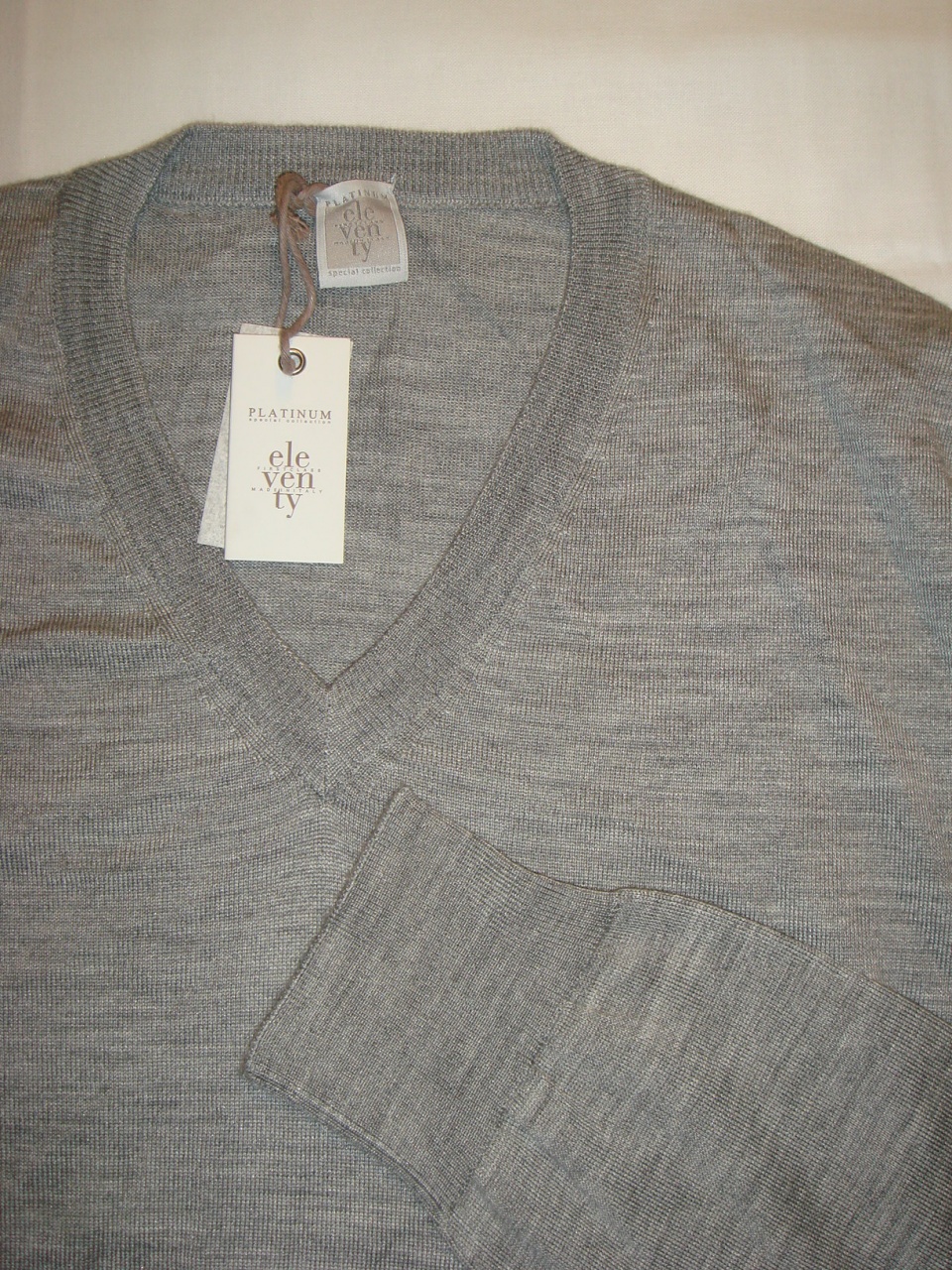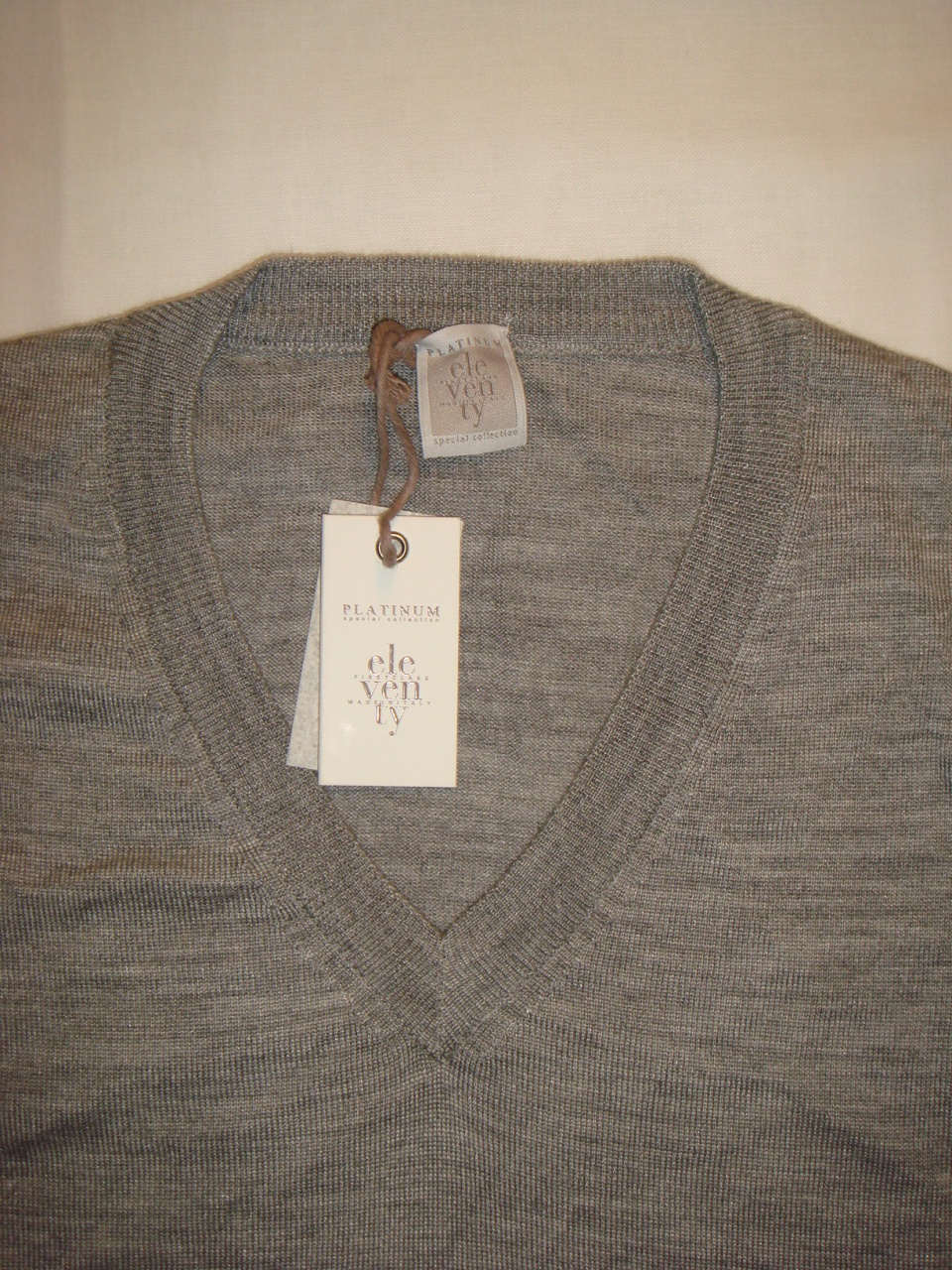 Продается новый мужской свитер бренда ELEVENTY PLATINUM превосходного исполнения, трикотаж тонкой вязки, светло-серого цвета , V-образный вырез горловины , состав : 70% шерсть мериноса, 30% шелк, все бирки прилагаются , гарантированный 100 % оригинал , размер L , производство Италия.