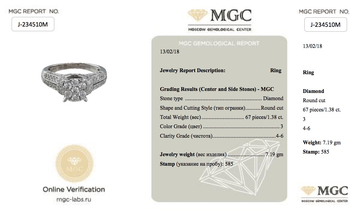 Кольцо из белого золота с бриллиантами 1,38 карат(сертификат МГЦ) - Часовой форум Watch.ru