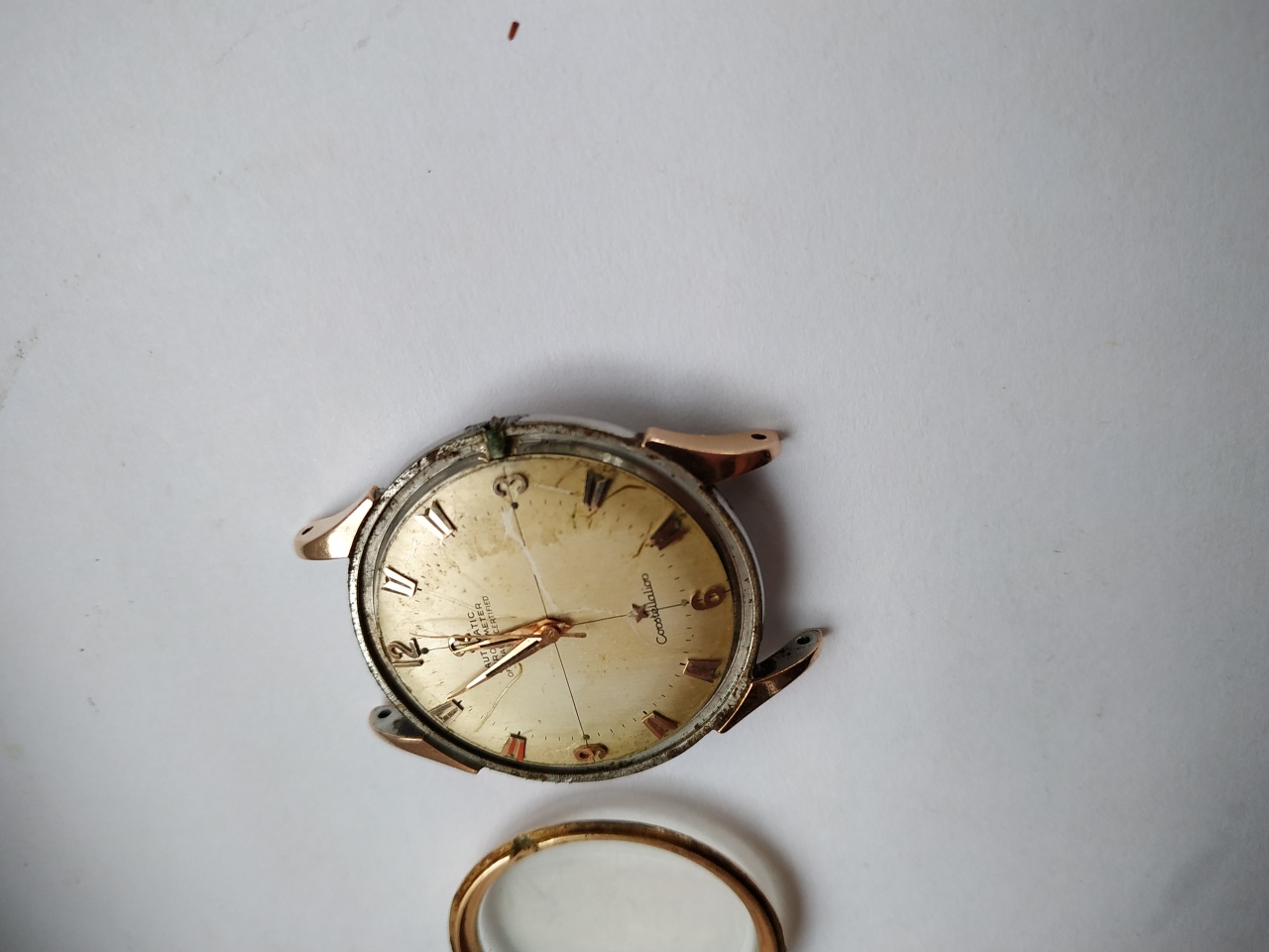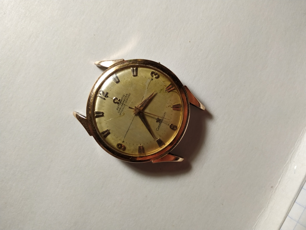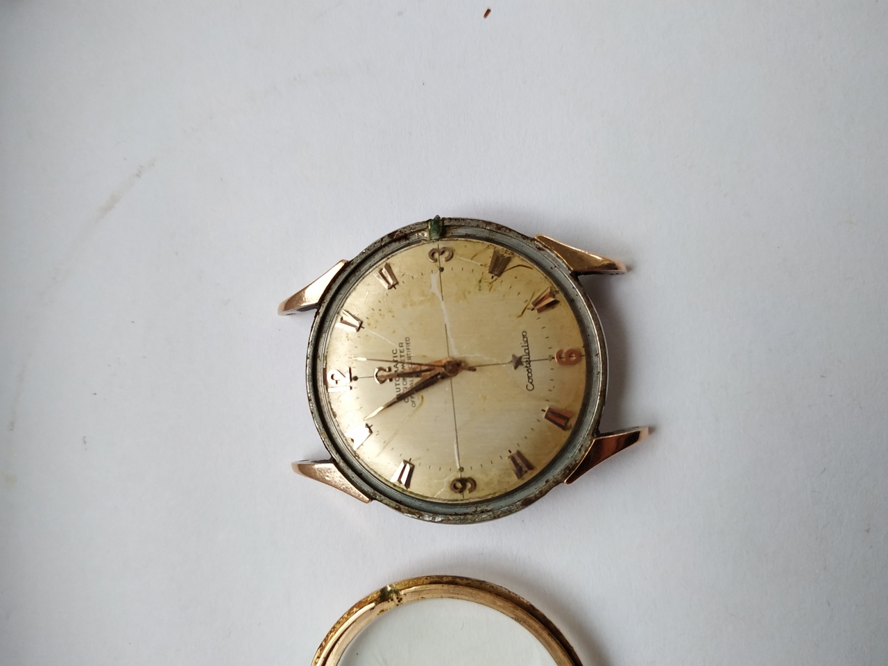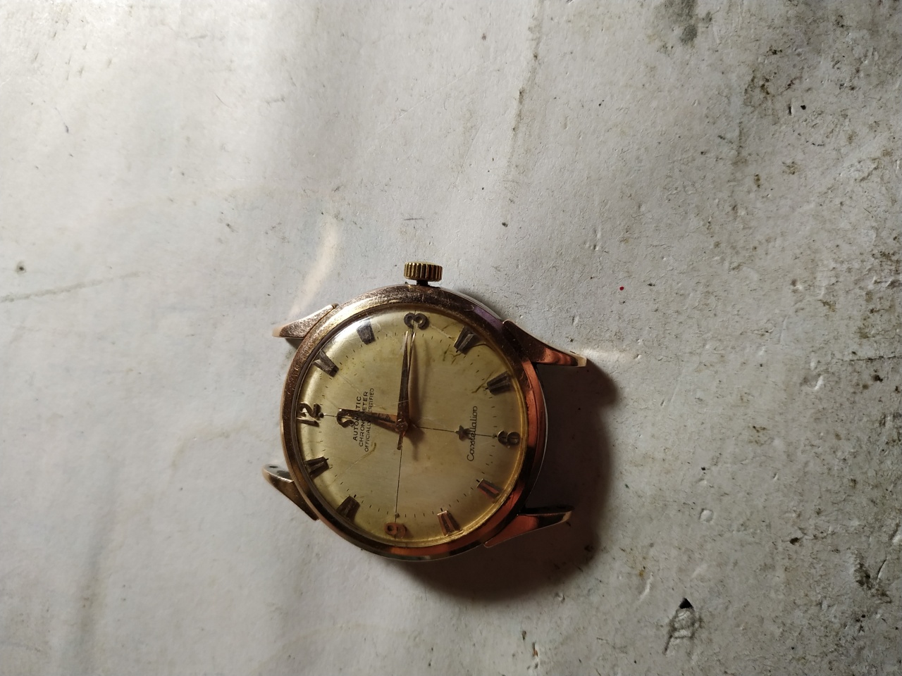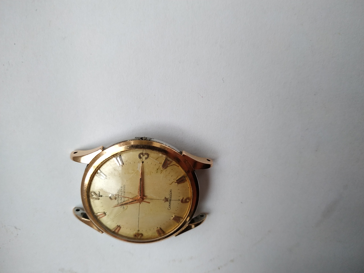 омега пятидесятых не придирайтесь к шрифту цифер оригинал) звезда и символ в нормальном положении посмотрите сперва откуда свет идет и куда падают тени от обьемных золотых меток) номер меха должен быть под бампером он просто на омеге должен присутствовать) безель если и золотой то только был отлит на заказ у ювелира в советское время. Фотки шлак оценка 3000 рублей. Часы убитые как донор можно больше выручить но очень дооолго.