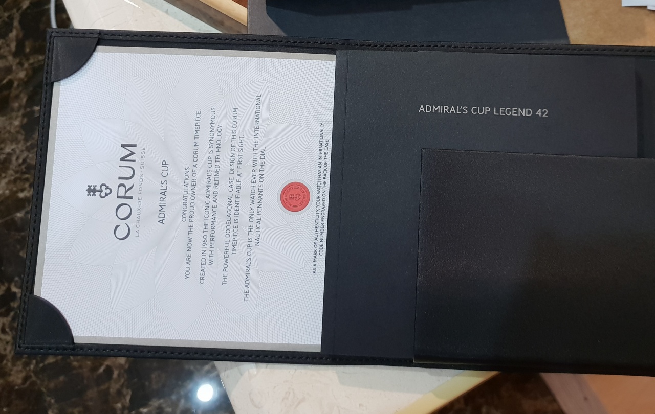 Admiral's Cup Legend. Двенадцатиугольный корпус. В механизме 27 камней, частота 28800 полуколебаний в час. Запас хода 42 часа. Секундная стрелка вынесена на отдельный циферблат. Внутренний безель дополнен часовыми метками в виде символов морского международного кода. Накладные метки. Заводная головка с защитой, украшена эмблемой компании - ключом. Задняя крышка с сапфировым стеклом. Браслет с раскладывающейся застежкой. Застежка с системой блокировки. В комплекте кожаный конверт с гарантийной картой и инструкцией.