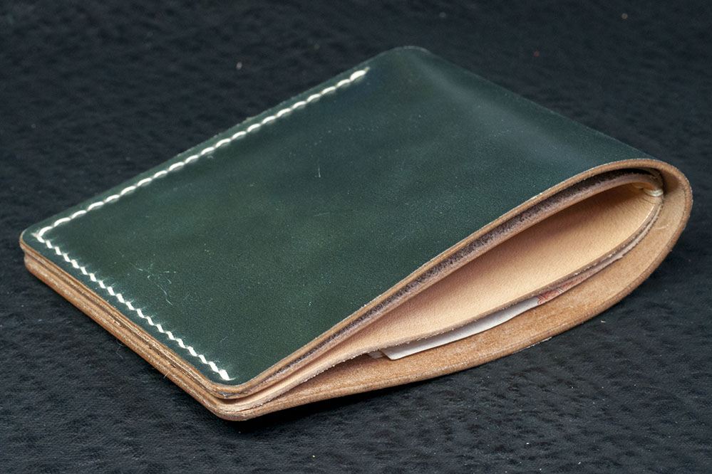 Опыт изготовления товаров из shell cordovan показывает, что они скорее надоедят, чем придут в негодность. Я уверен, что данный экземпляр прослужит вам, по крайней мере, до вывода бумажных денег из обращения.