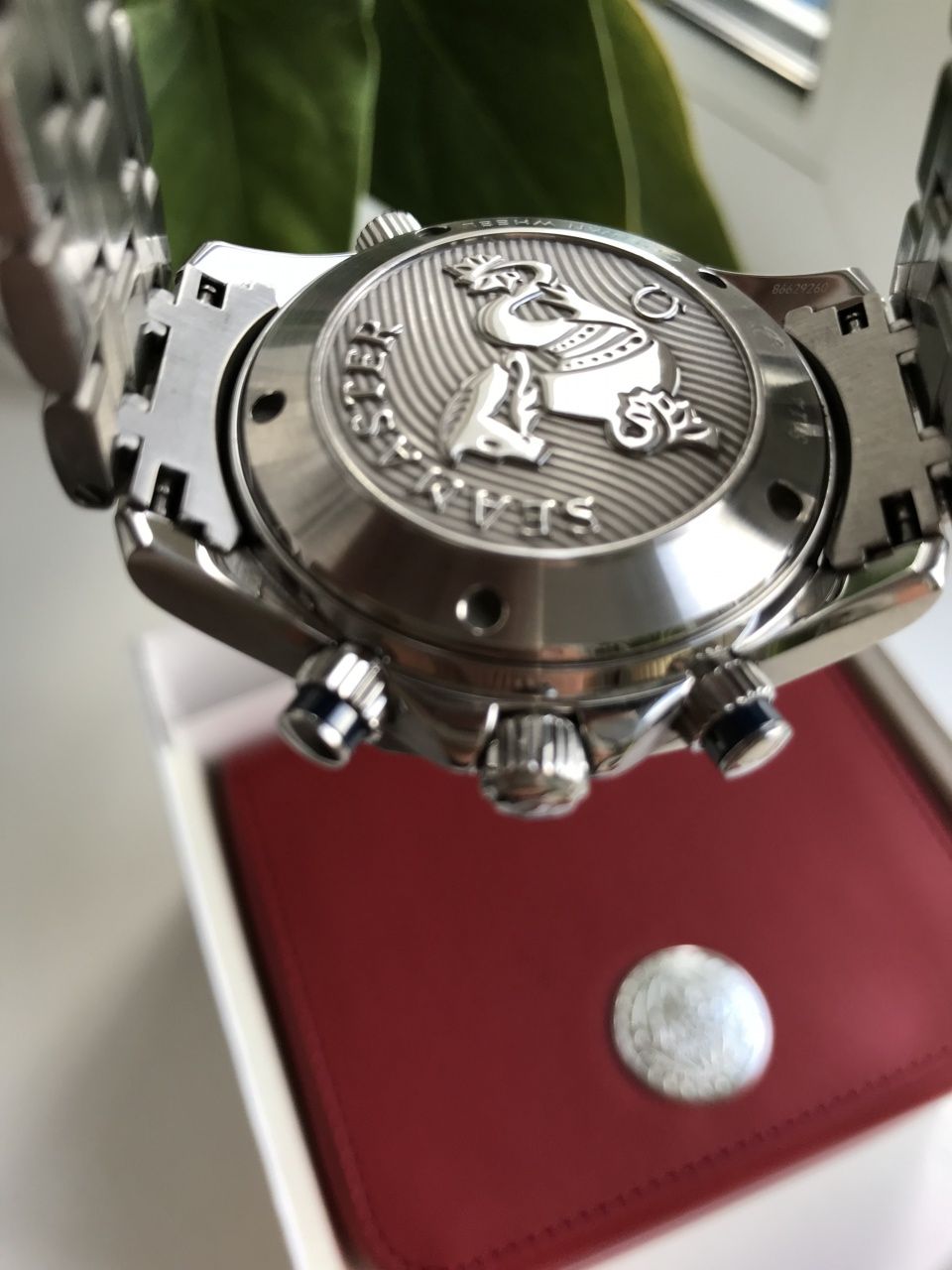 Оформление: Сертификат хронометра C.O.S.C. Выпуклое стекло с антибликовым покрытием, однонаправленно вращающийся безель из керамики, завинчивающаяся заводная головка, гелиевый клапан, коаксиальный механизм с запасом хода на 52 часа