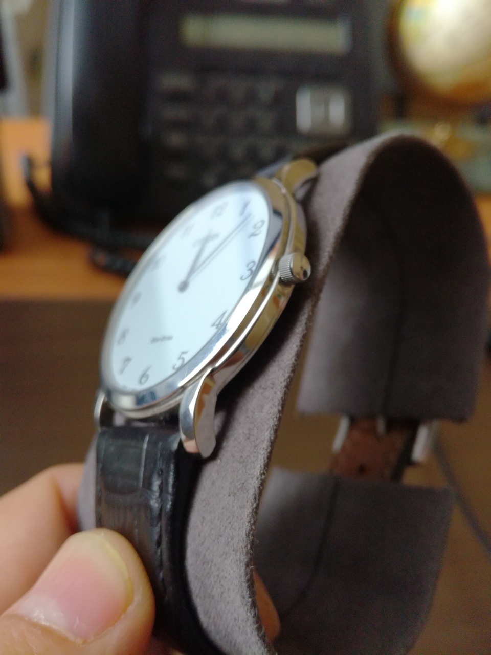 Тонкий костюмный двустрелочник. Легкое б/у (носил редко), т.е. обычные следы использования, никаких забоин, критичных царапин и прочего.