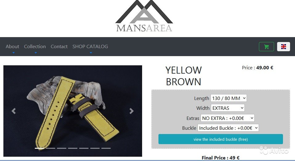 Желтый ремень 24мм, натуральная кожа, Mansarea (Испания)