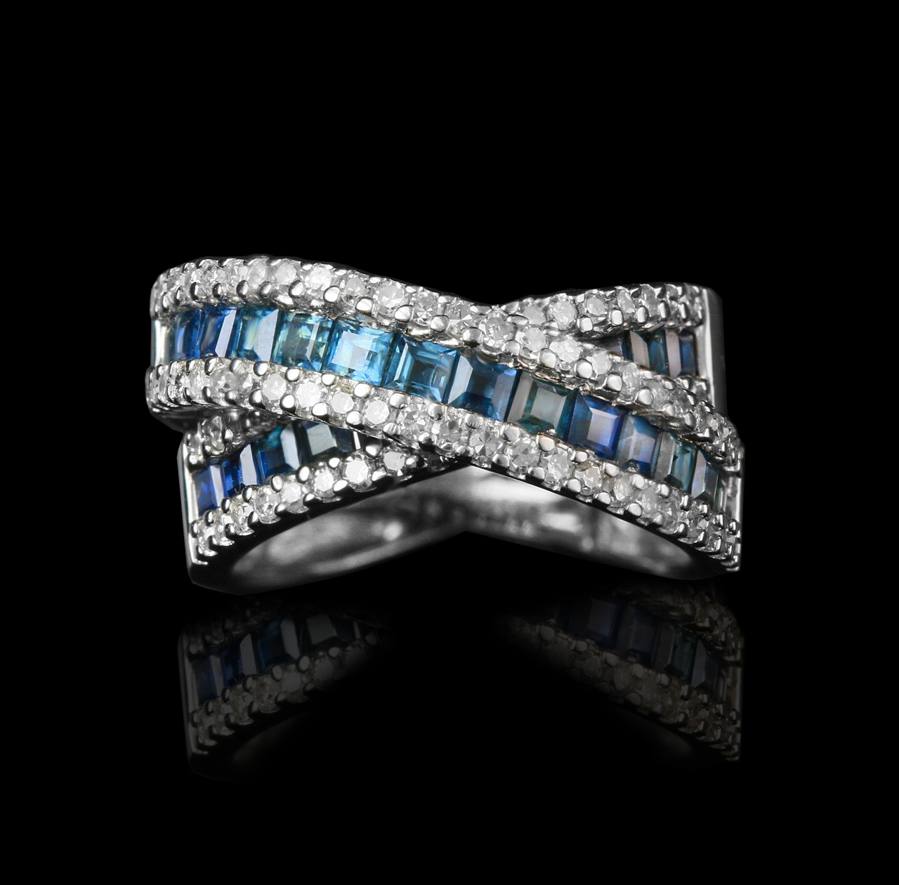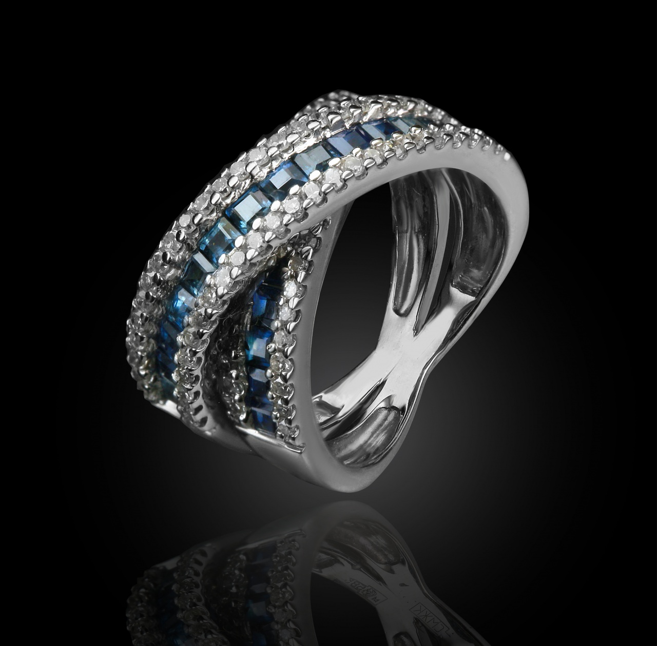 Детское кольцо из белого золота с сапфирами 0,4 карат и бриллиантами 0,4 карат