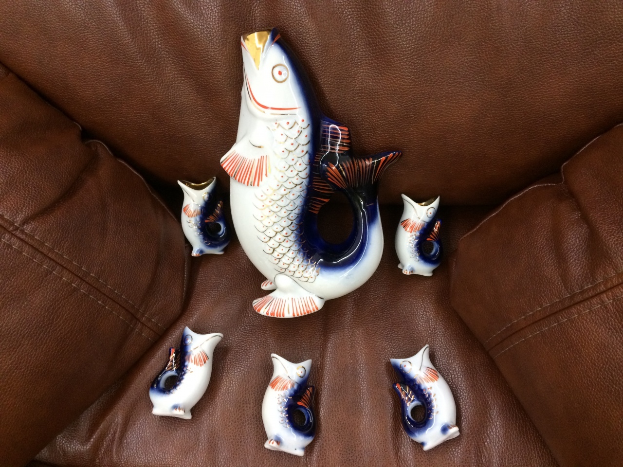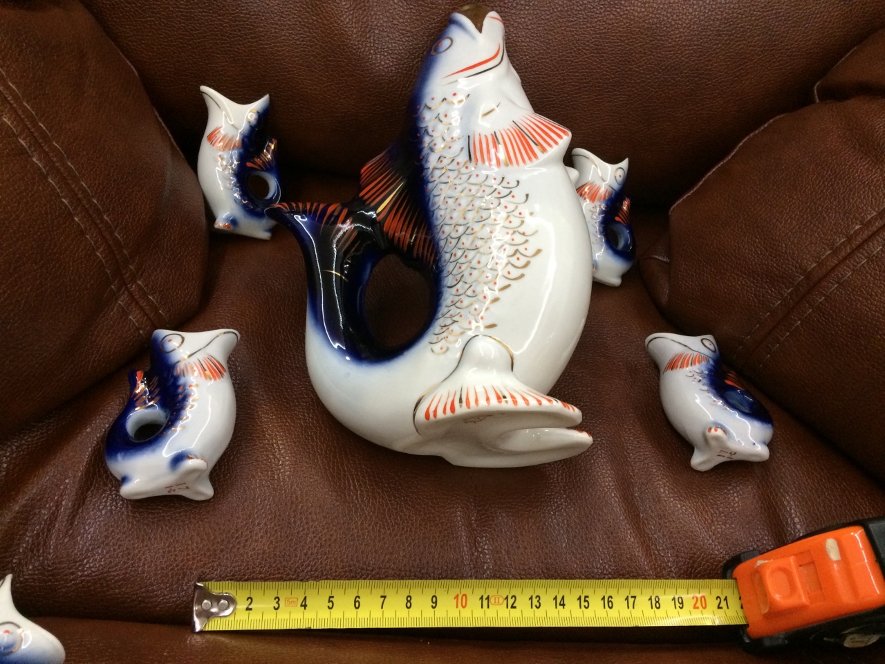 Фарфоровый графин "Рыба" + 5 Рыбок, СССР