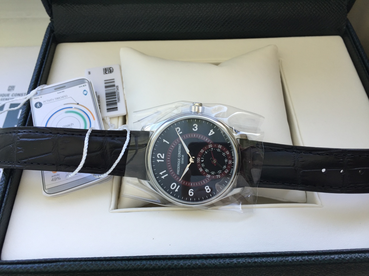 Швейцарские смарт часы Frederique Constant Horological Smartwatch FC-285BBR5B6 Компания Frederique Constant выпустила вторую мужскую версию умных часов Horological Smartwatch, линейка получила название Notify. Часы синхронизируются со смартфоном. Время работы от батарейки — 2 года. Часы отслеживают активность: дистанцию, шаги, калории. Если засидитесь, часы завибрируют и предложат размяться. Также иногда будут появляться советы по повышению физической активности и по улучшению качества сна. Информацию об активности можно посмотреть только в смартфоне: на циферблате часов отображается лишь время. Оно настраивается автоматически, в зависимости от часового пояса. В отличие от первой модели, в новых Horological Smartwatch появились уведомления. На циферблате в позиции 2, 4, 8 и 10 часов располагается маленький индикатор уведомлений. Каждый сделан в форме пиктограммы и отображает разные уведомления: о пропущенных звонках, активности и уведомлениях от приложений. При входящих уведомлениях часы вибрируют. Часы поддерживают следующие функции:- Извещения Get-Active: приложение MMT-365 позволяет настроить извещения Get-Active, которые будут напоминать вам о том, что пора заняться физической активностью, если вы не двигались заданное количество времени.- Мониторинг сна: отслеживая цикл вашего сна, «умный» будильник поможет вам проснуться в оптимальное время, когда ваш организм будет чувствовать себя отдохнувшим.- Уведомления.- Динамичный тренер.- Мониторинг физической активности.- Индикация времени и даты Always-on.- «Облачное» резервное копирование.- Индикация мирового времени. Механизм: Кварцевый + умные часы