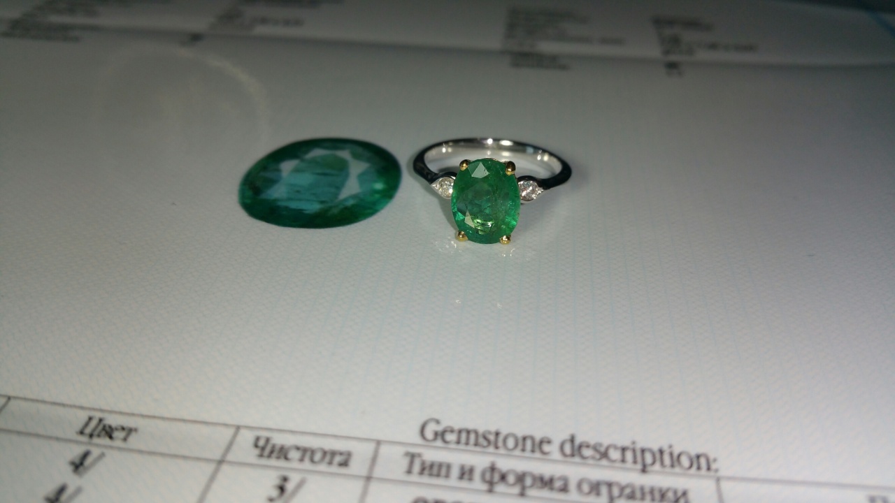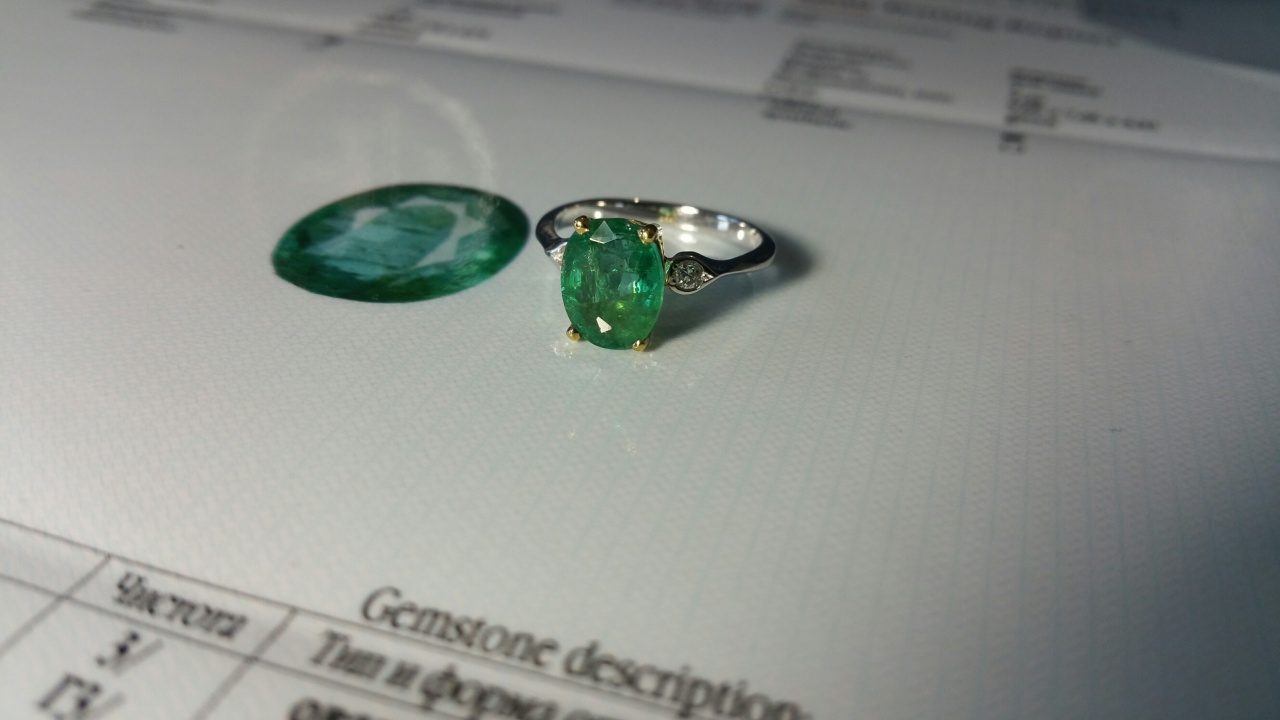 Новое золотое кольцо с природным изумрудом 2.20 карата и бриллиантами.