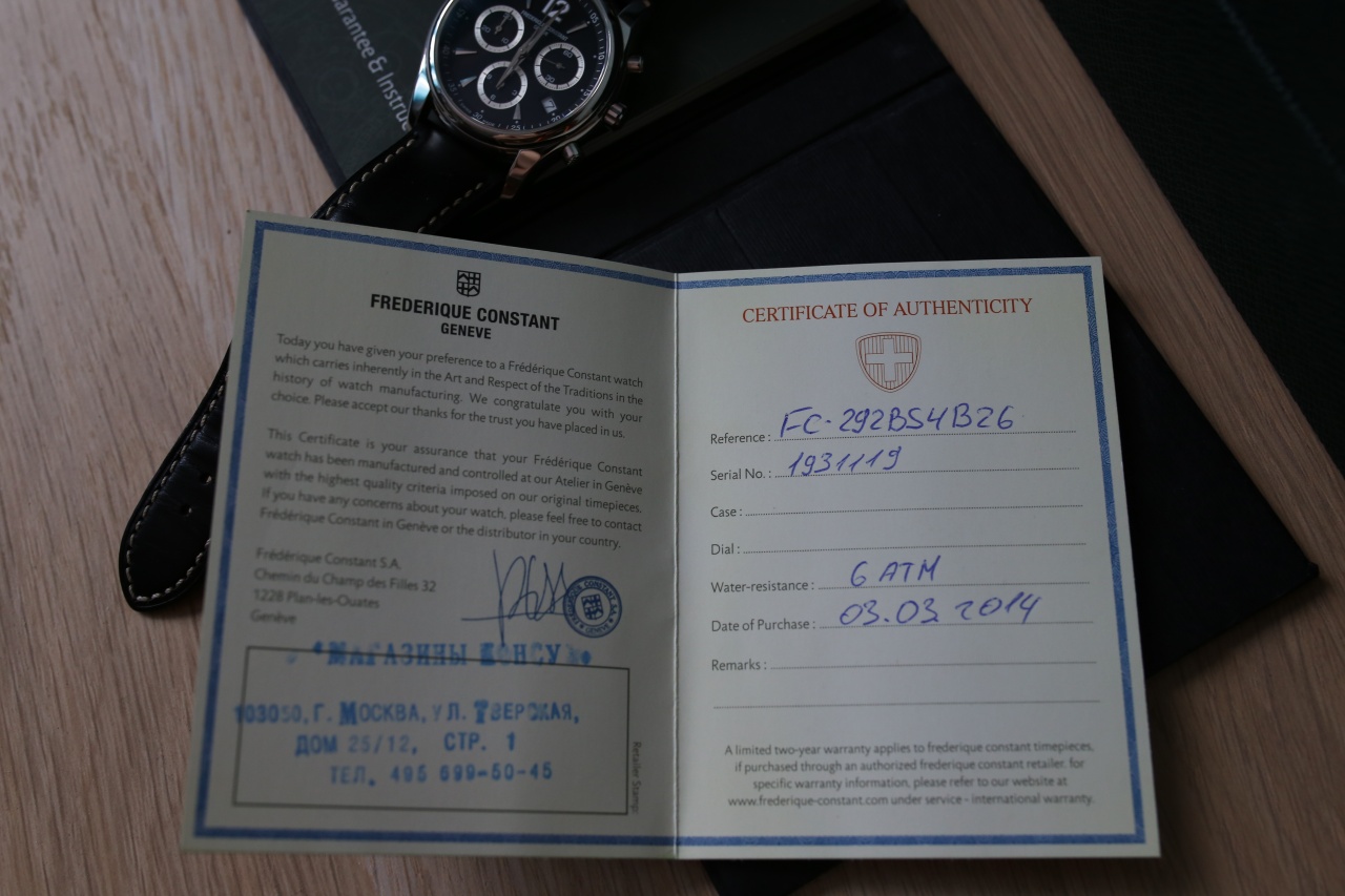 Швейцарский хронограф. Куплены в Консуле, в отличном состоянии, за все время одевались от силы раз 10, есть несколько мелких следов от носки. Перед продажей часы прошли ТО с заменой батарейки.