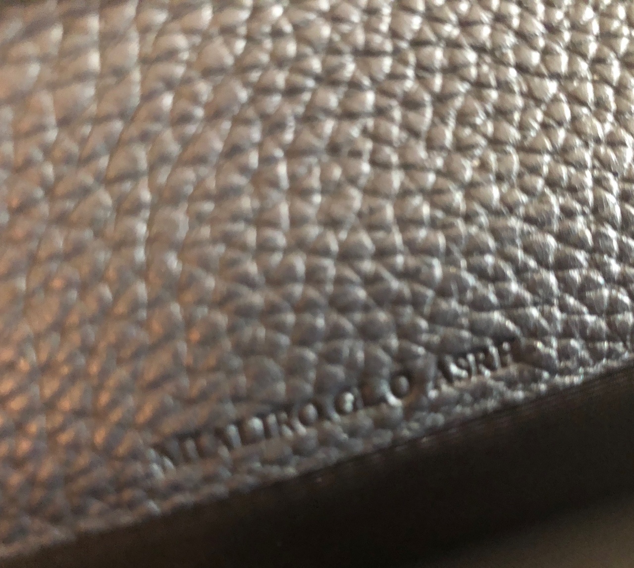 Высокое портмоне для носки в кармане пиджака/куртки, размер 9 на 19 см, раскладное, слева два глубоких отделения и 10 слотов для карт, справа - три продольных отделения, одно на молнии, легко влезет много визиток/документов. Серебристые гравировки, фурнитура с лого бренда, тисненый логотип на передней панели. Мягкая телячья кожа, очень ноская, проверено лично. Глубокий темно-темно-синий цвет, за счет фактуры кожи, смотрится роскошно.