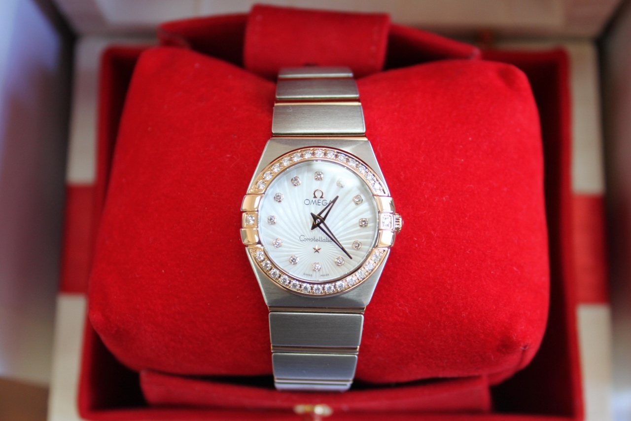 Omega Constellation Quartz сталь-розовое золото перламутр бриллианты полный комплект