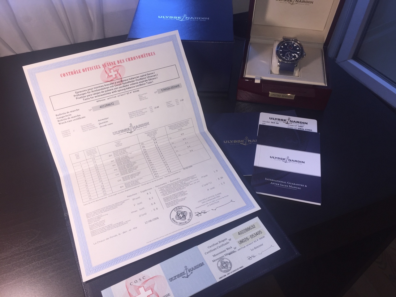 Механизм: автоматический, калибр UN-26, запас хода 42 часа, сертифицирован C.O.S.C.