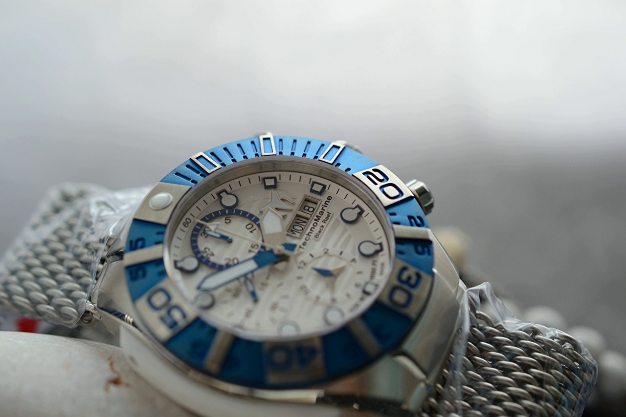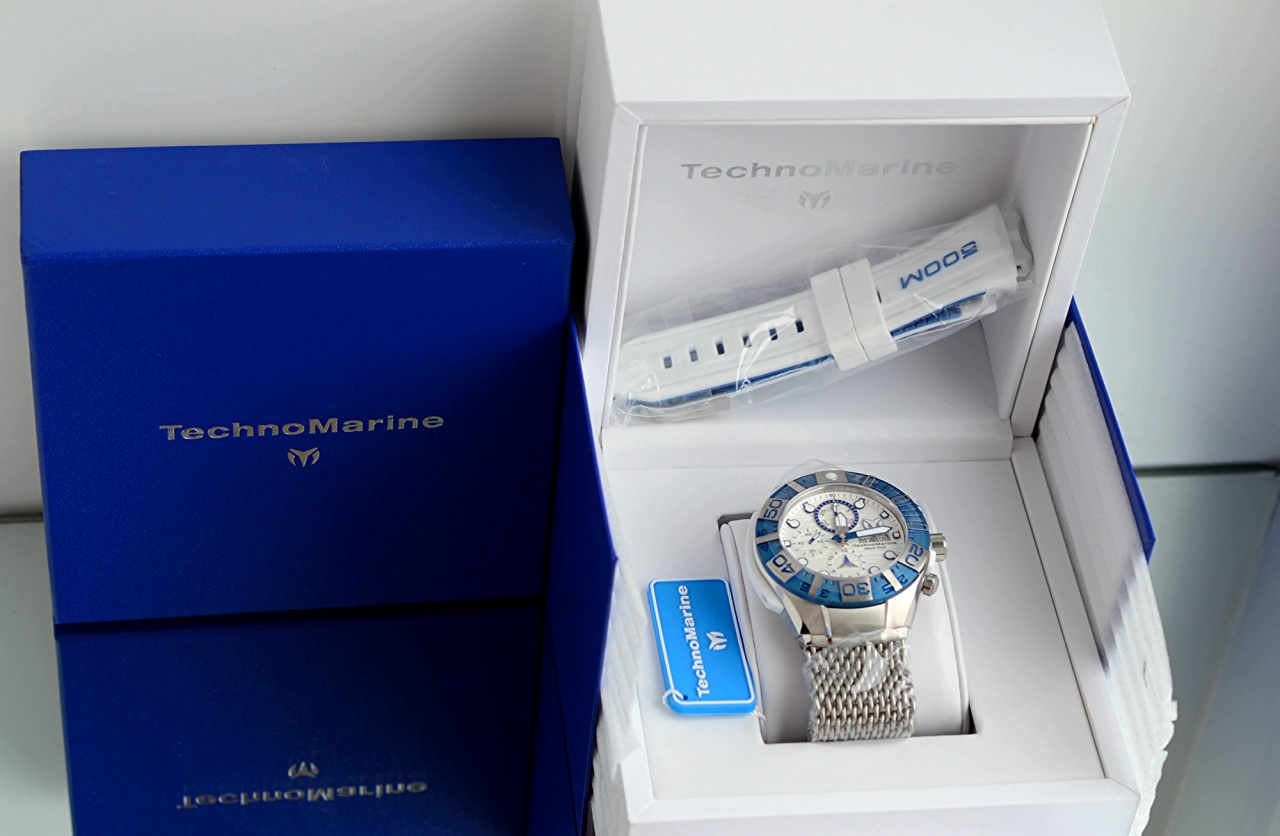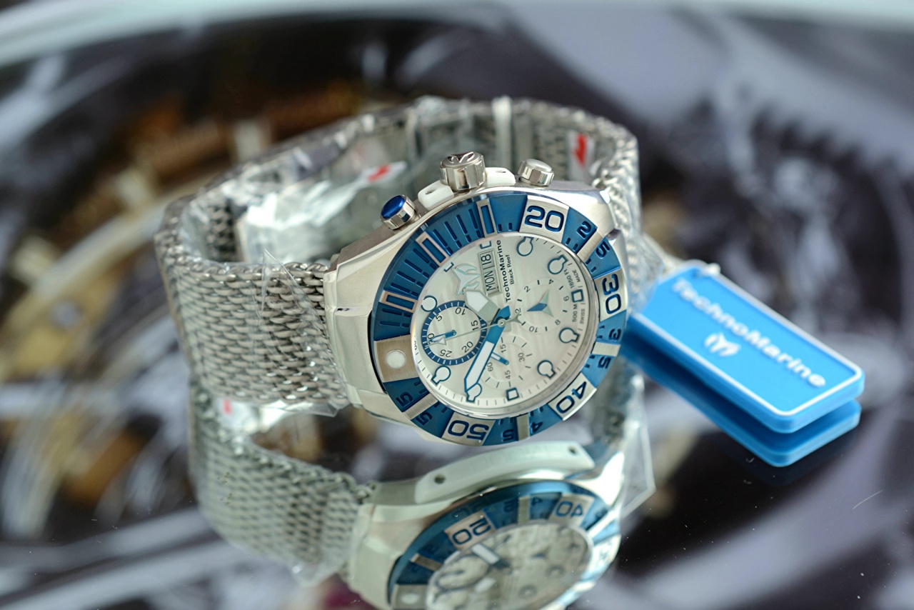 Автоматический Швейцарский Хронограф TechnoMarine, дайвер - 50атм, день и число, 45мм, браслет
