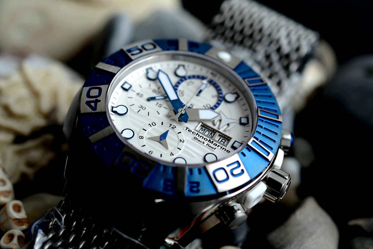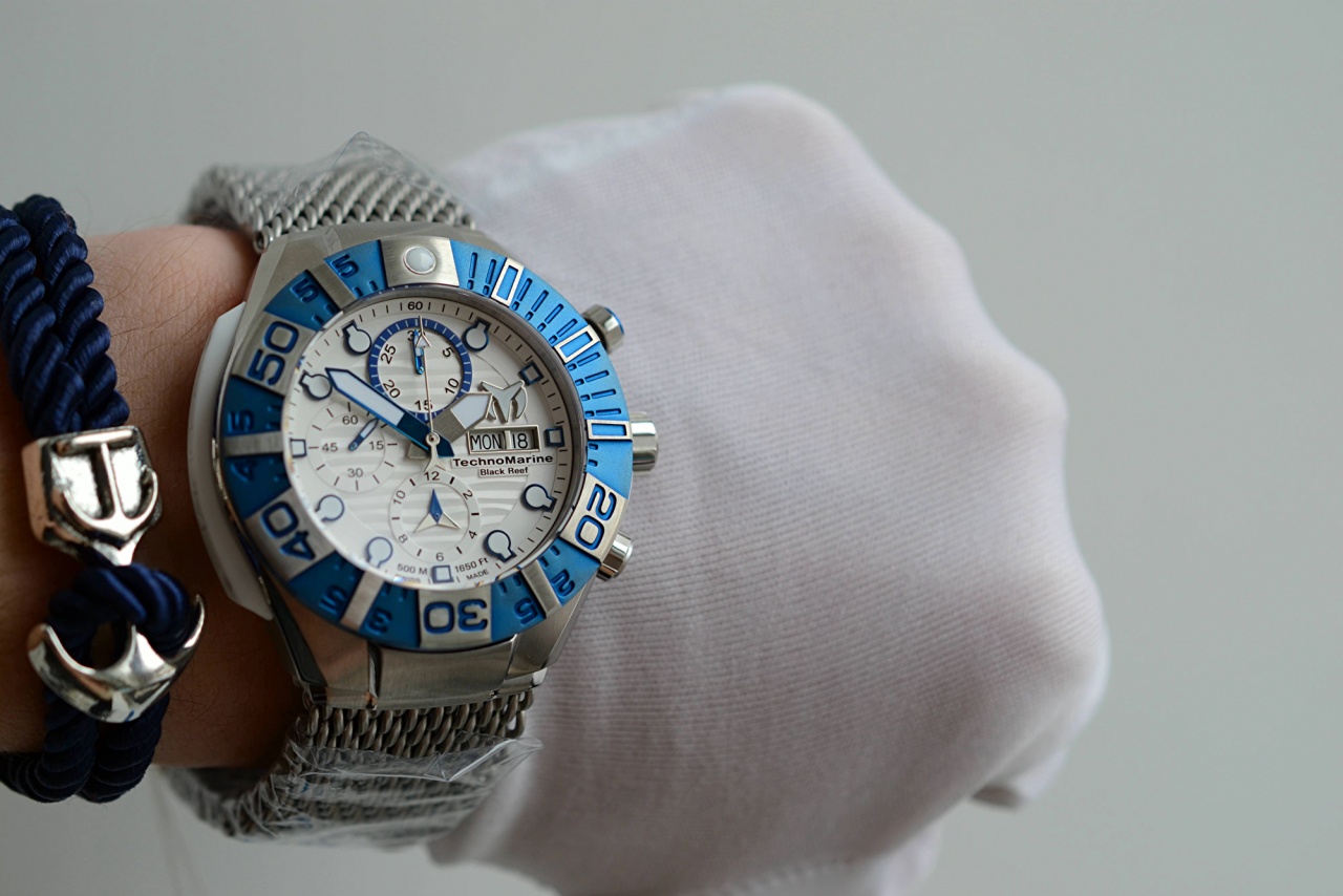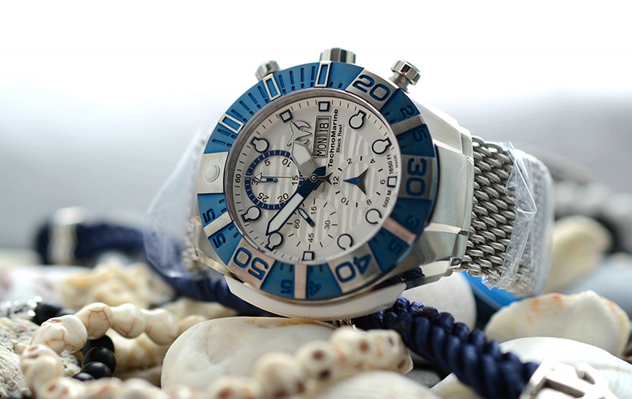 Автоматический Швейцарский Хронограф TechnoMarine, дайвер - 50атм, день и число, 45мм, браслет