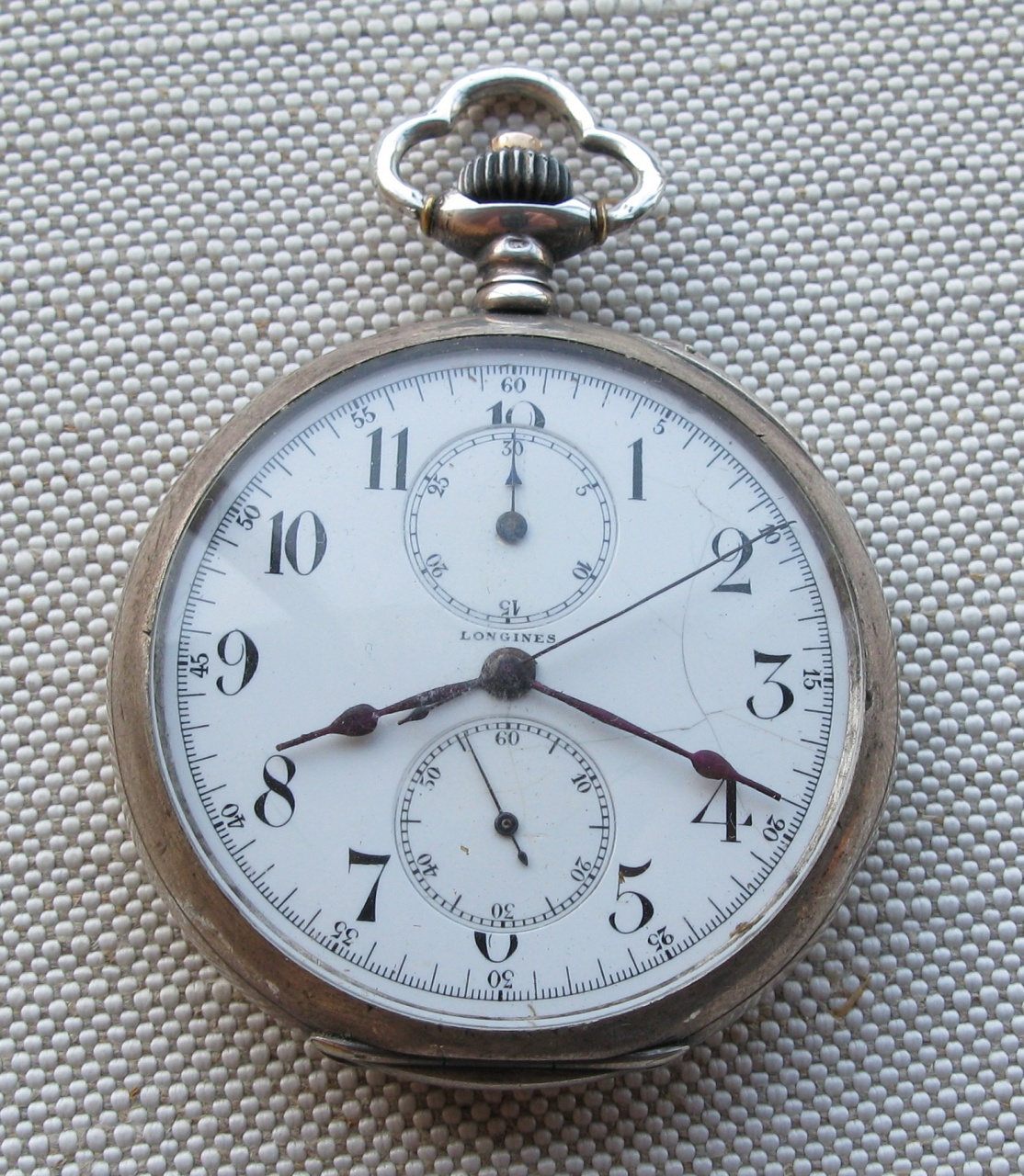Карманные часы хронограф, Longines, серебро 900 проба, 52 мм, Швейцария, 1910 год