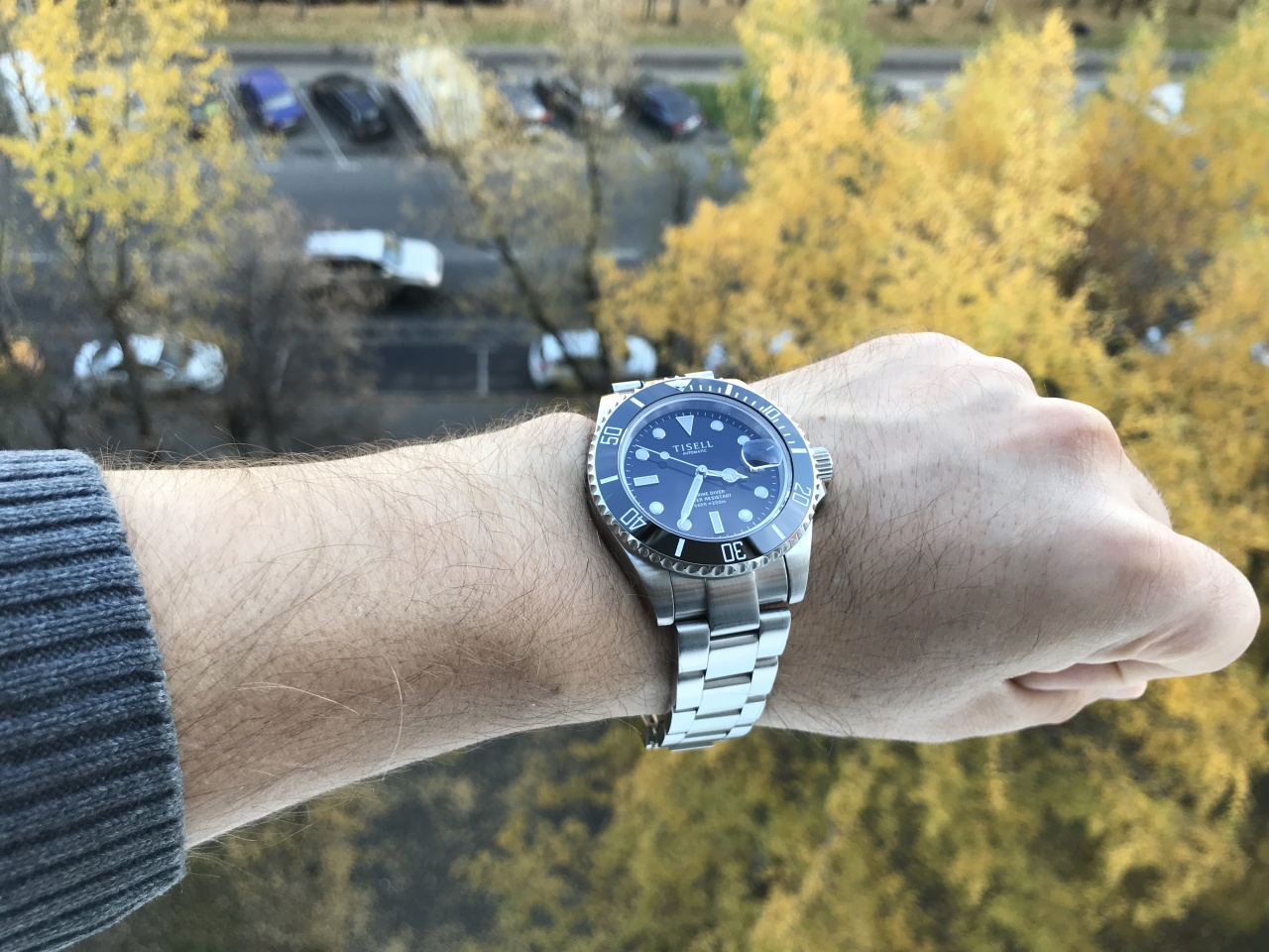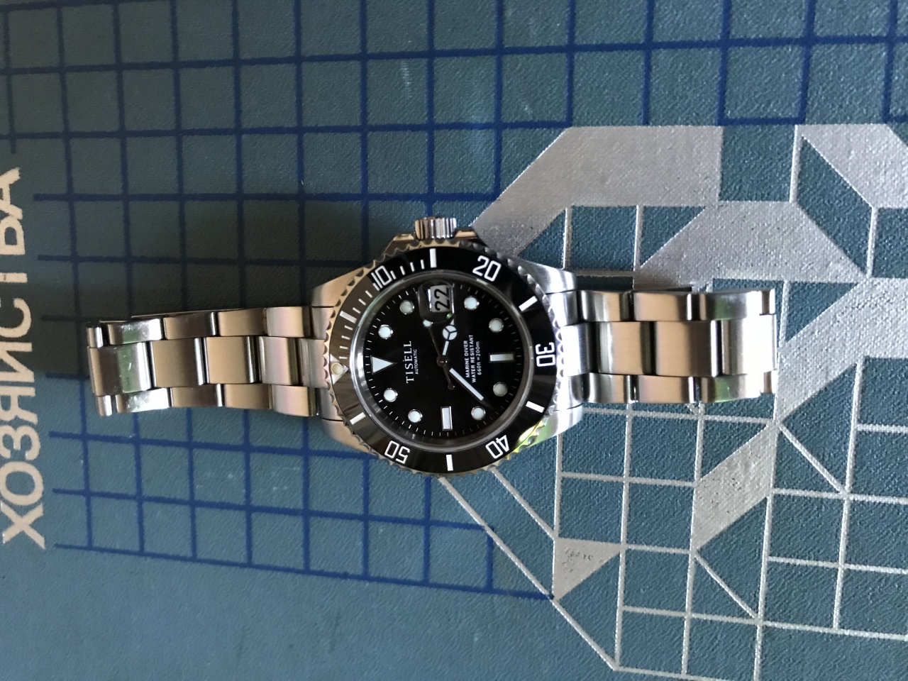 Продаю замечательный хомаж на одну известную модель. Покупались в начале года здесь на форуме. Состояние часов хорошее, есть естественные следы эксплуатации. Часы идут примерно в +7 секунд в сутки. Часы вскрывались, отклеилась метка на 9 часов, мастер приклеил.