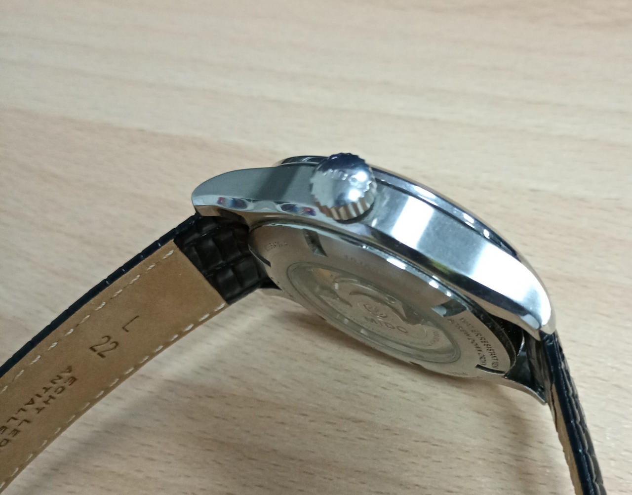 В комплекте новый немецкий ремешок "ящерица" на коже, оригинальная бакля в комплекте. Также в комплекте обе коробки (кожаная на замка + внешняя) и документы.