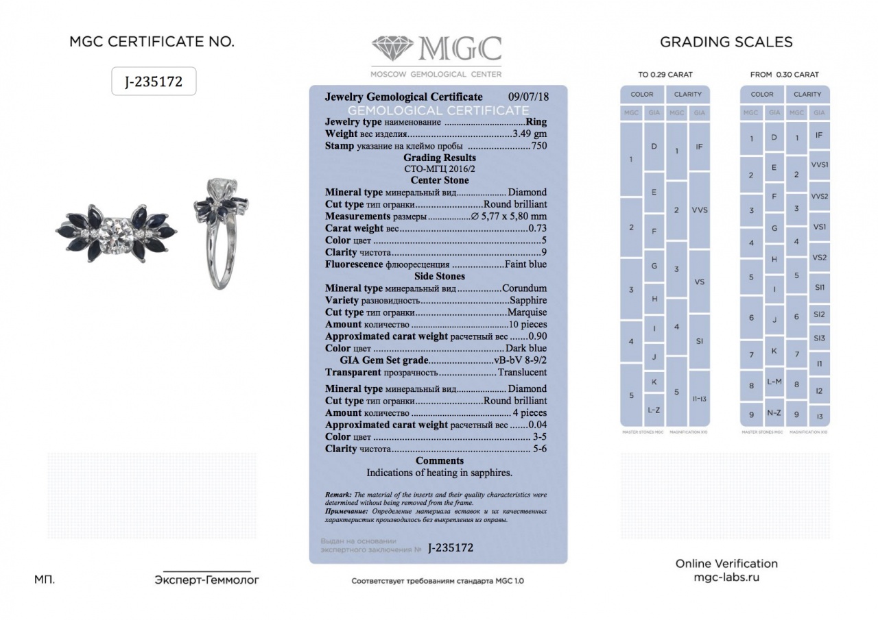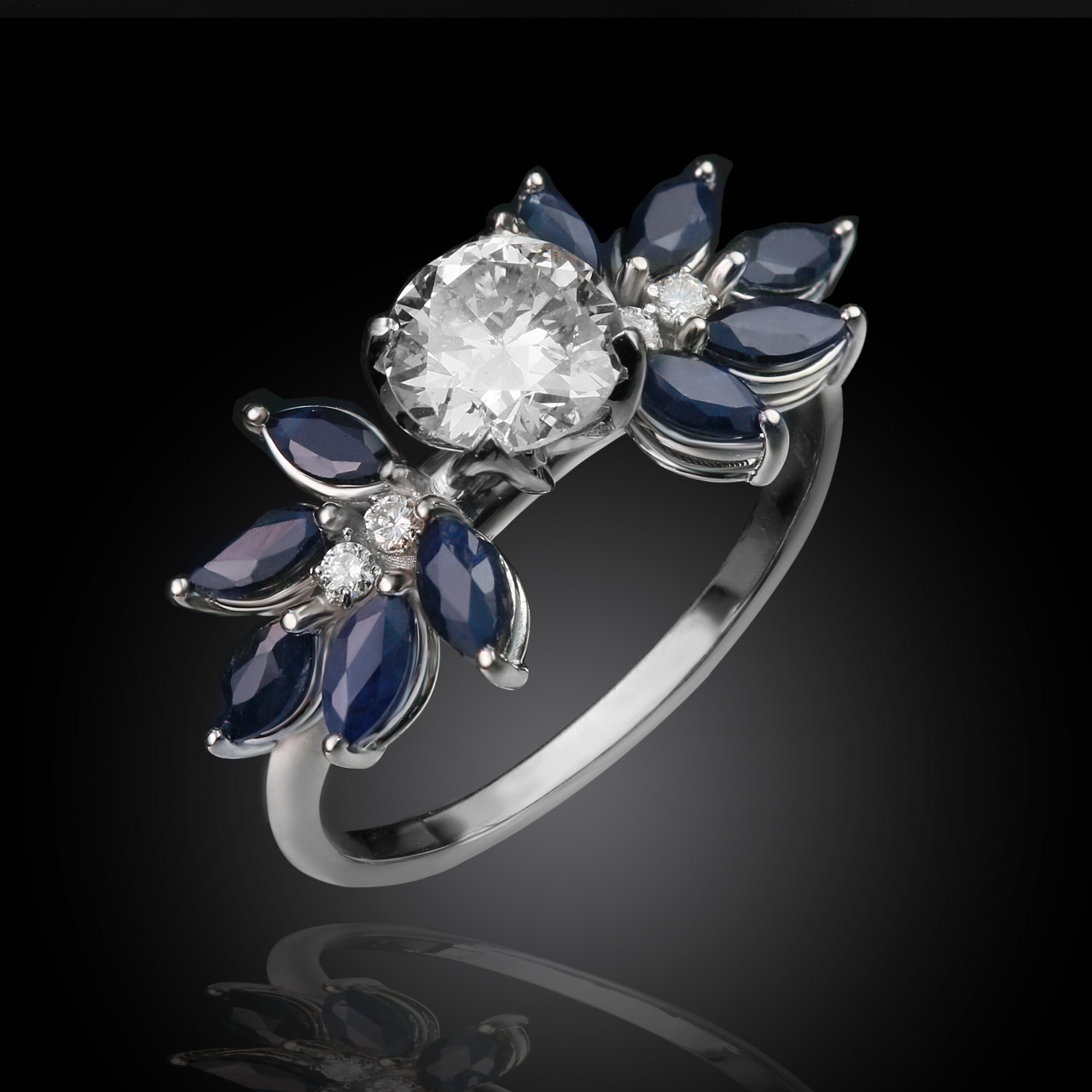 Кольцо из белого золота с сапфирами 0,9 карат и бриллиантами 0,77 карат (сертификат МГЦ) - Часовой форум Watch.ru