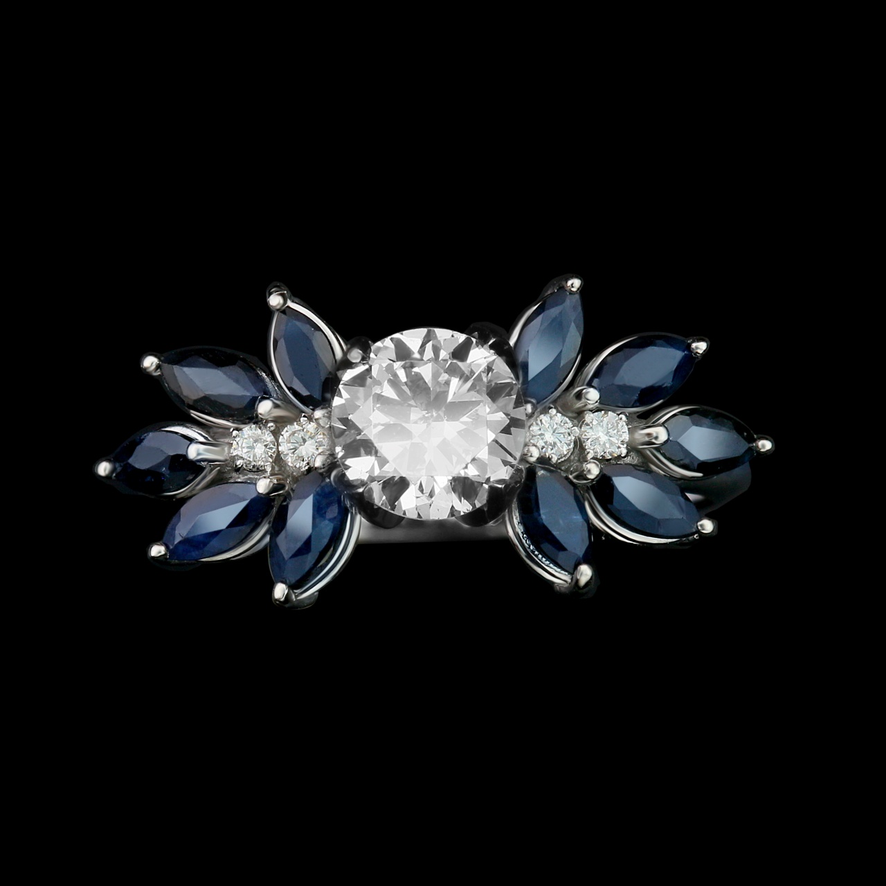 Кольцо из белого золота с сапфирами 0,9 карат и бриллиантами 0,77 карат