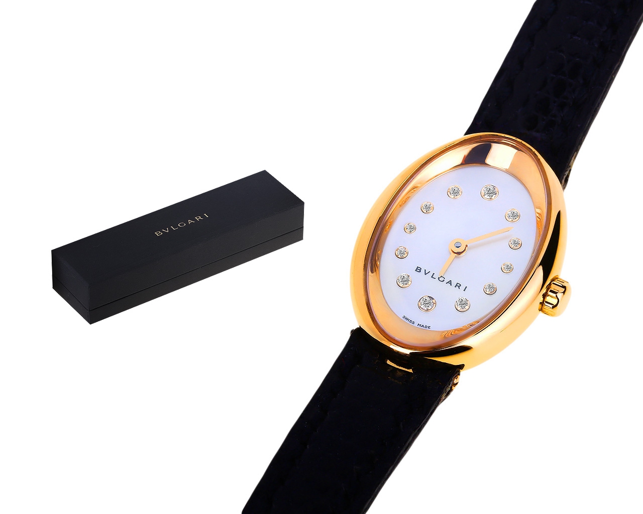 Прекрасные золотые часы с бриллиантами 0.07ct Bvlgari