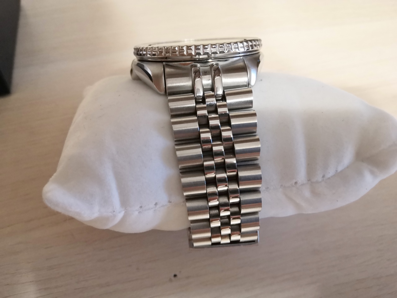 Здравствуйте уважаемые форумчане! Часы были подарены мне абсолютно новыми, перед новым годом - в конце декабря 2016 года. Браслет miltat super jubilee был куплен за 120$ месяцем позже на сайте strapcode, браслет полный - есть все звенья. Часы имеют нормальный износ, идут явно точнее паспортных значений, при повседневной носке часы приходится подводить не чаще чем раз в месяц - уходят примерно на 1 минуту в плюс. Мелкие царапины видны только при ярком, направленном свете - при обычной носке их практически не заметно. Причина продажи - покупка новых часов.