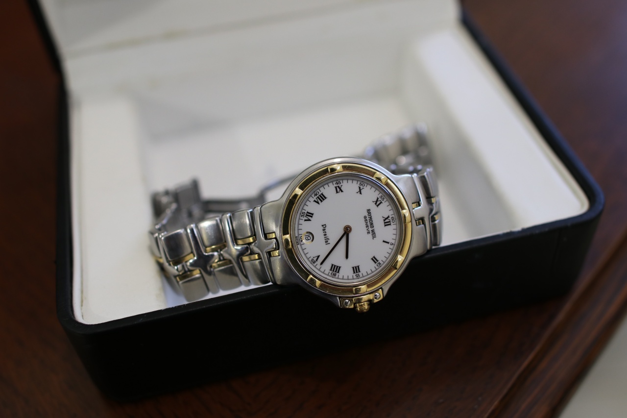 Прекрасный классический Raymond Weil! Глубоких царапин или вмятин нет! Новая батарейка , браслет на руку до 19 см! Стекло без царапин и сколов!