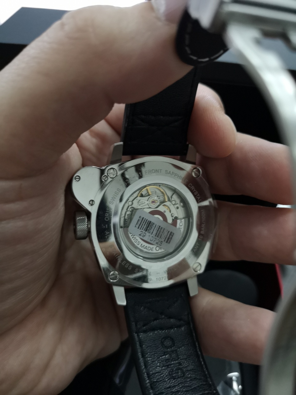 Задняя крышка корпуса - нержавеющая сталь, на винтах, прозрачная задняя крышка из минерального стекла.