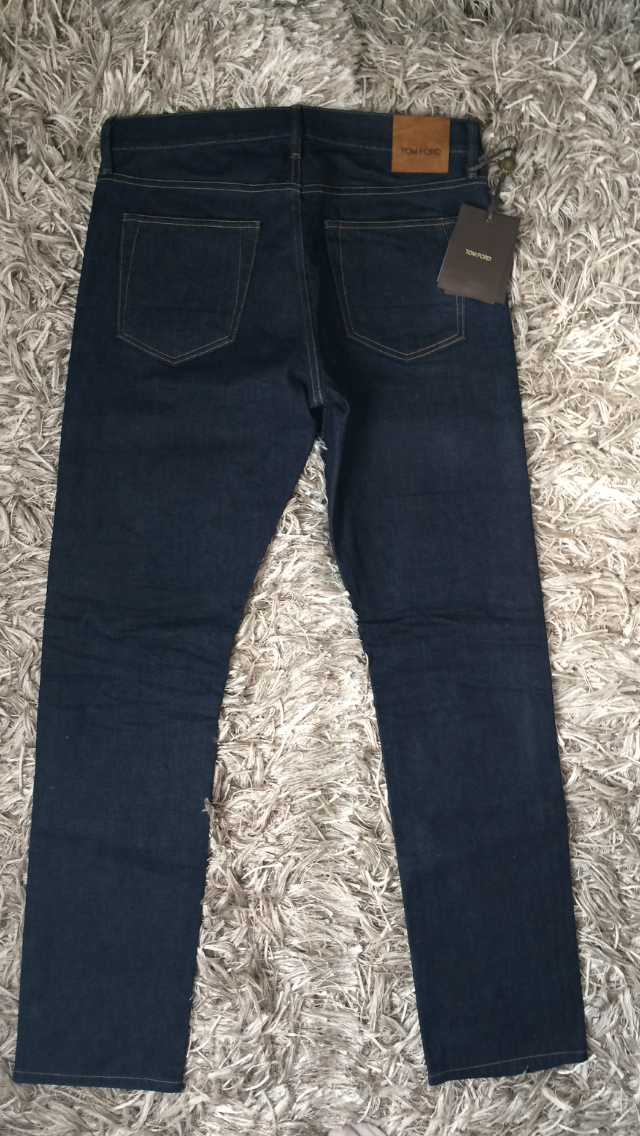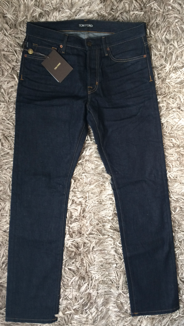 В продаже,новые мужские джинсы прямого кроя от американского бренда TOM FORD.Изготовлены из лёгкой,но плотной джинсовой ткани тёмно-синего цвета.Высококачественный натуральный хлопок,с добавлением небольшого количества укрепляющих синтетических волокон-это комфортная,"дышащая" ткань.Умеренная эластичность позволяет модели хорошо садиться по фигуре и в то же время отлично держать форму.