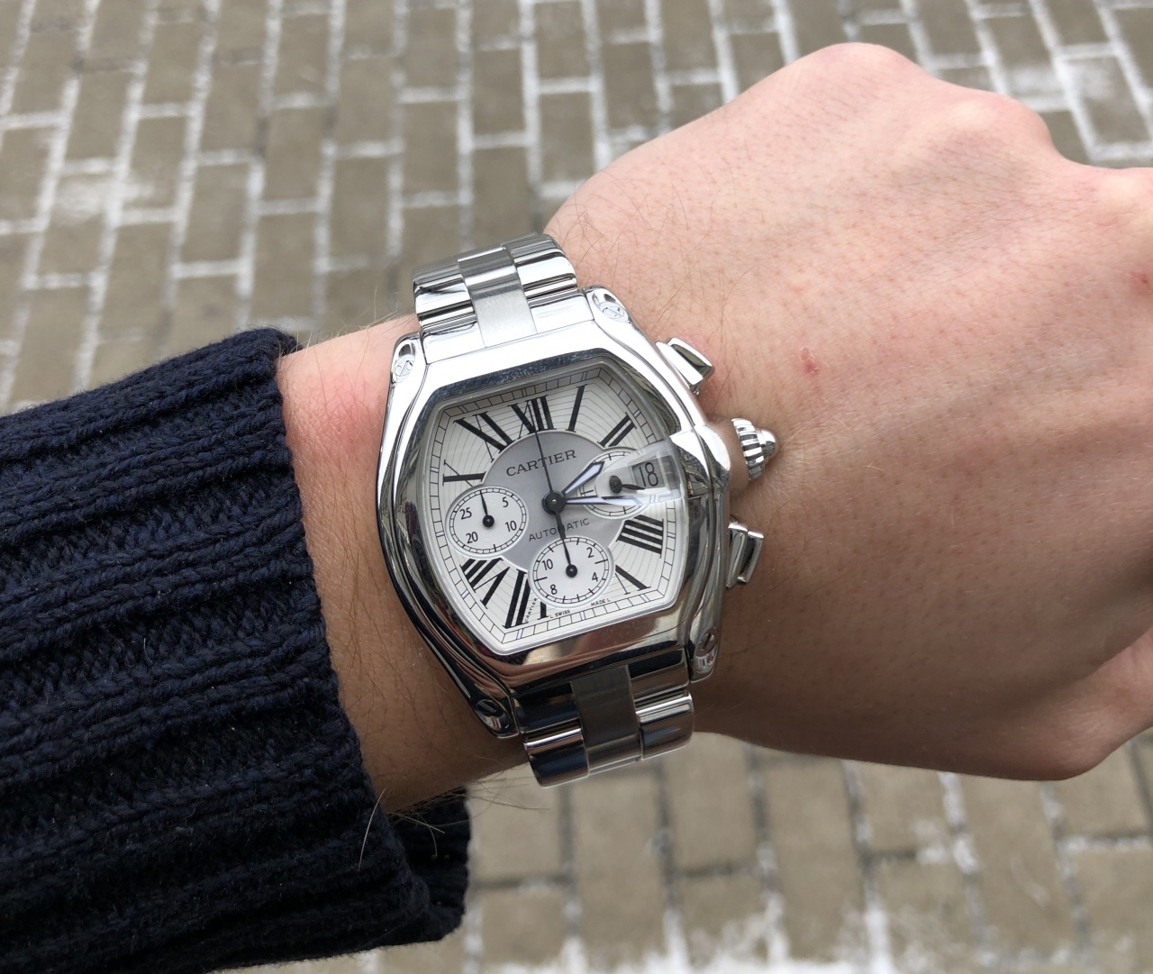 Cartier Roadster Chronograph XL (Браслет , Светлый циферблат , Циклоп )
