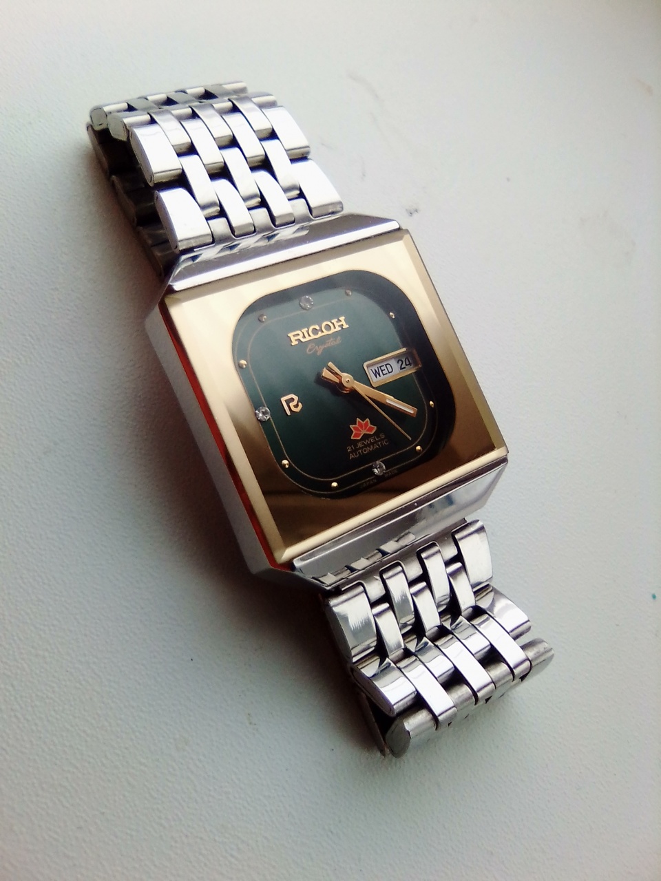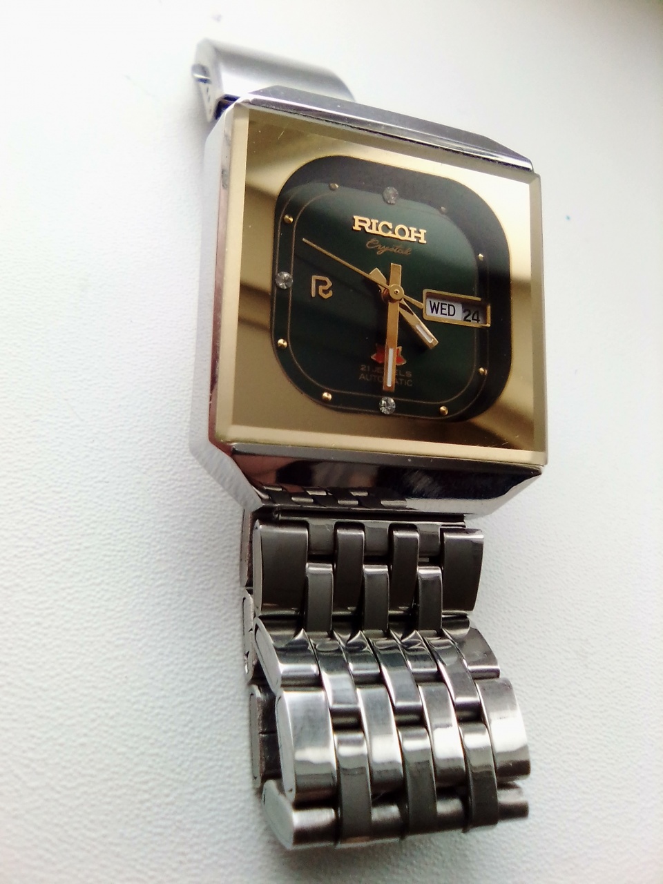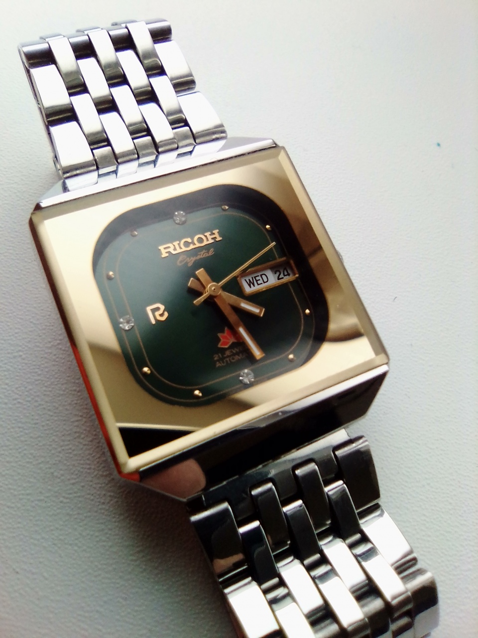 Отличное состояние часов из 70-х, на задней крышке плёнка,стекло зеркальное без царапин ,полностью стальные на отличном ходу механический позабытый RICOH, из Японии.Корпус размер 34х 40