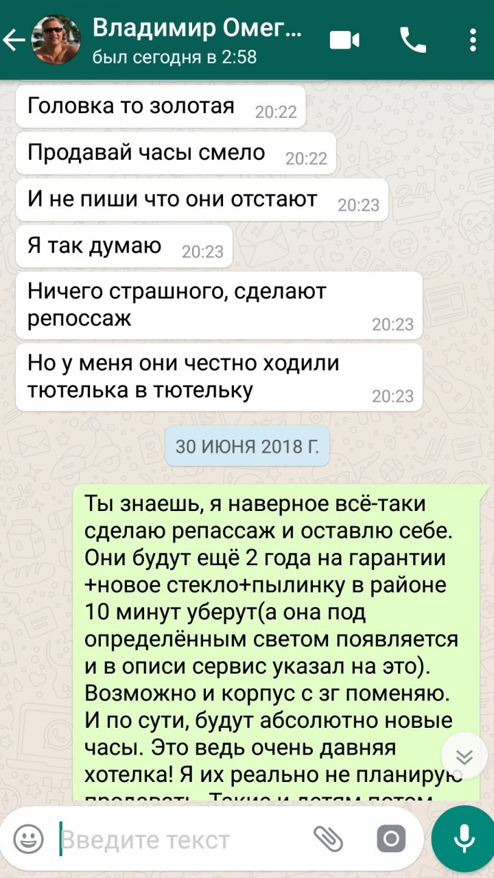 P.S.: я предлагал Владимиру возместить хотя бы частично расходы по репассажу, т.к. он продавал мне часы «на гарантии» без скрытых дефектов