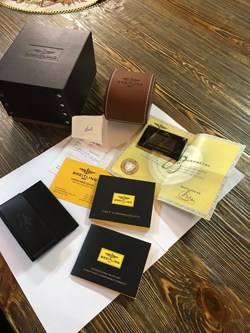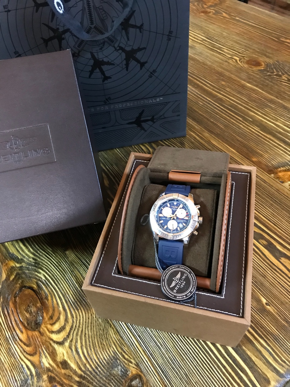 Продаю часы Breitling, покупал в Москве новыми 22.02.2016. Часы в идеальном состоянии, носил редко. Механизм - термокомпенсирующийся хронометр Breitling SuperQuartz, c точностью хода +/- 10 сек в год. Сапфировое стекло с двусторонним антибликовым покрытием. Стальной корпус, размером 44 мм. Водонепроницаемость 200 метров. Каучуковый ремешок с застёжкой. В комплекте все документы, сертификаты, электронная гарантийная карта, коробки, чек о покупке. При необходимости готов выслать дополнительные фото на whats app. Перед продажей готов подъехать к официальному дилеру для проверки часов!