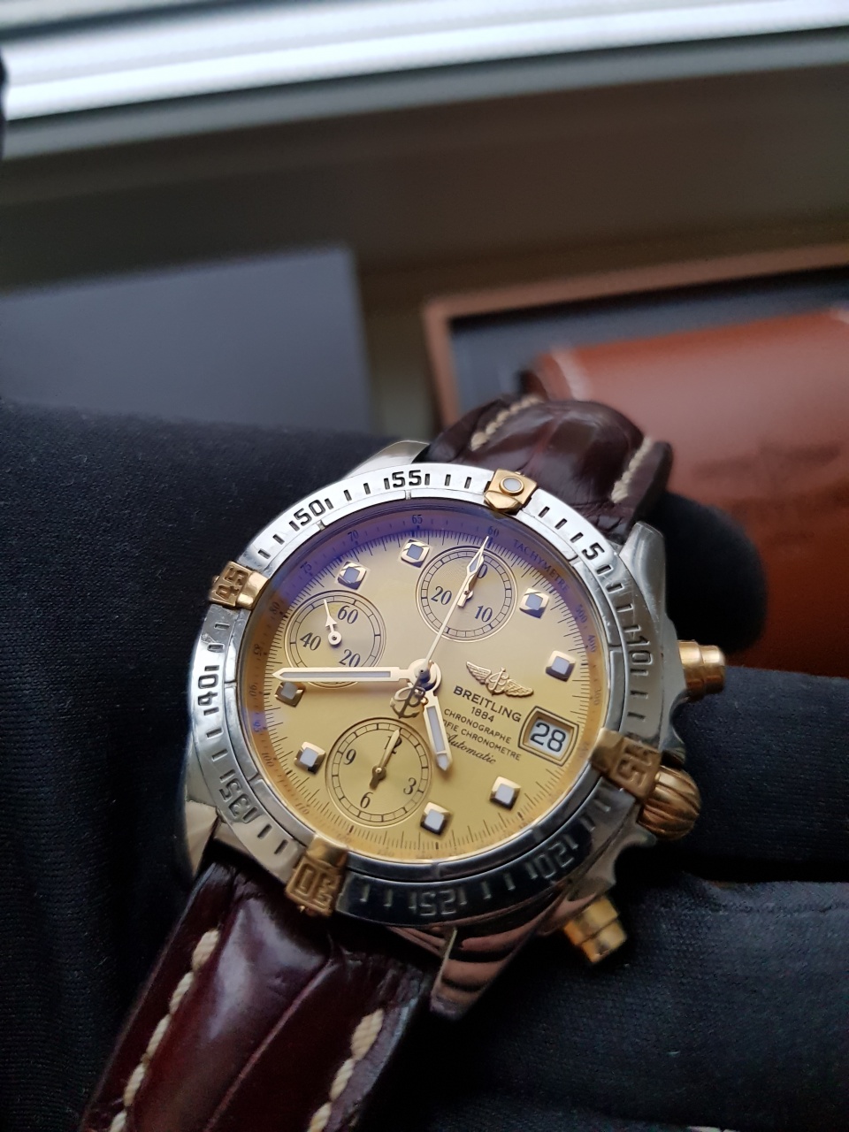 Внешнее состояние очень хорошее, часы имеют незначительные следы носки, никогда не полировались! В комплекте с часами идет фирменная коробка.