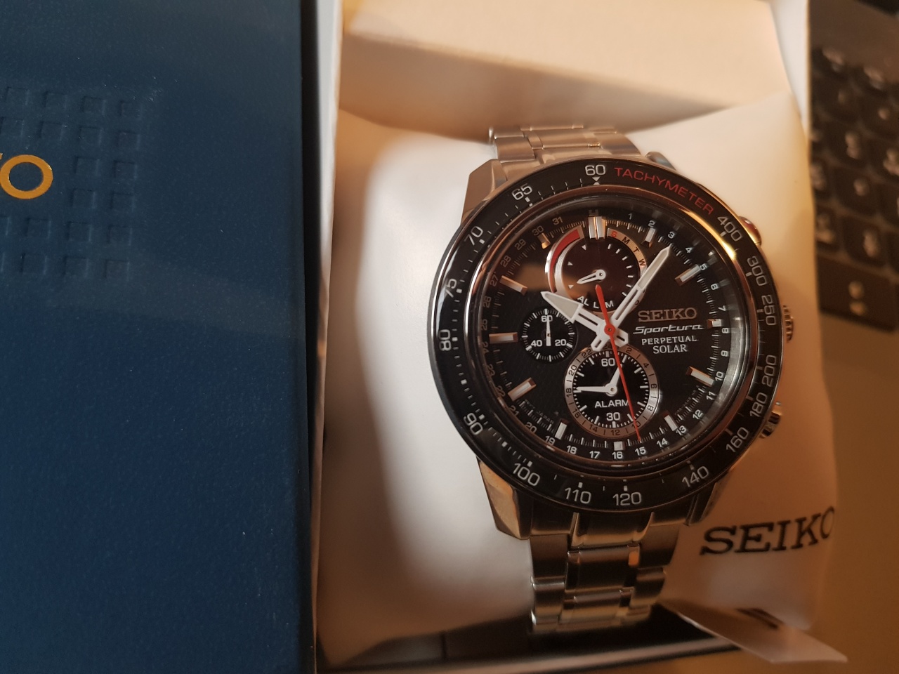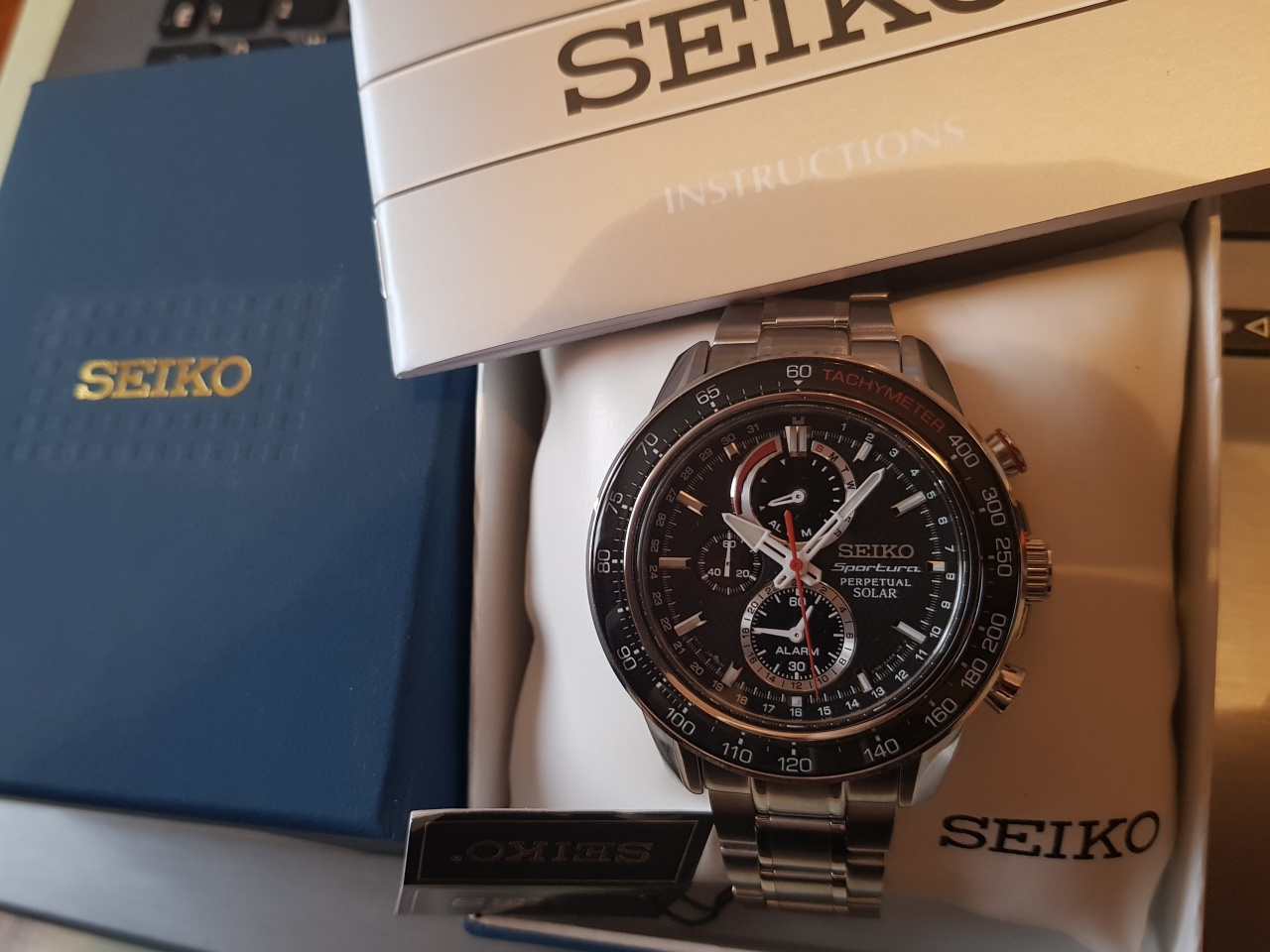 Аккумулятор часов заряжается от солнечного света. Калибр V198. Сплит-хронограф с пределом измерения до 24 часов и шагом 1/5 секунды. Полный календарь до 2100 года. Тахиметрическая шкала. Индикатор запаса хода. Будильник. Защищает циферблат сапфировое стекло с антибликовым покрытием. Корпус и браслет выполнены из нержавеющей стали. Заводная головка с защитой. Раскладывающаяся застежка.