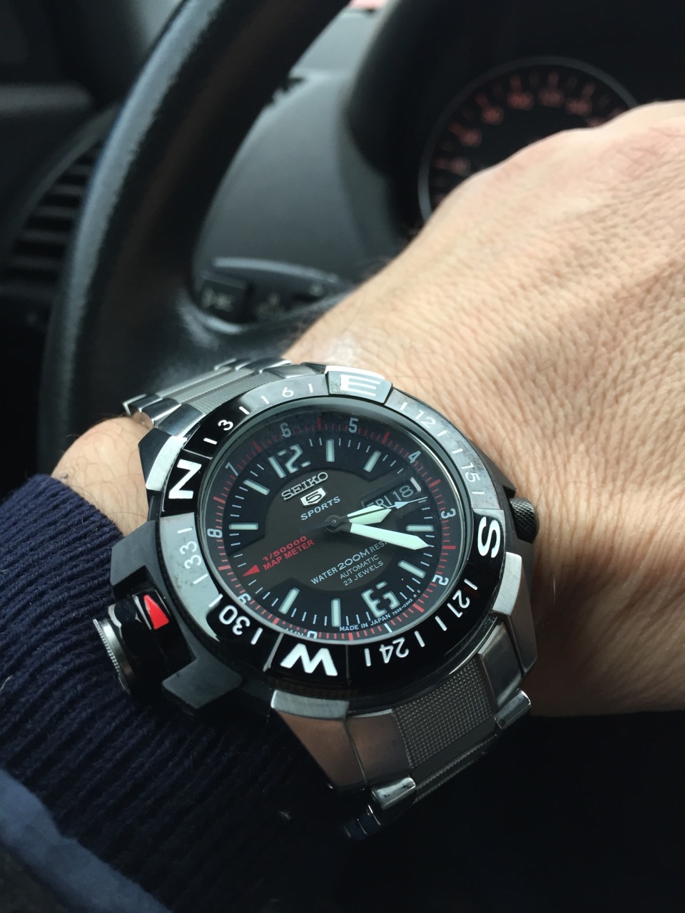 В продаже в прекрасном, почти новом, состоянии часы Seiko skz229j1, японской сборки.Автоматический механизм 7S36,минеральное стекло Хардлекс, встроенный курвиметр(прибор для измерения кривых на картах и схемах), корпус из 316L стали, завинчивающаяся заводная головка, стальной литой браслет.Диаметр корпуса 43мм без зг.В комплекте часы на браслете, незаполненная гарантийка,пластиковая коробка.