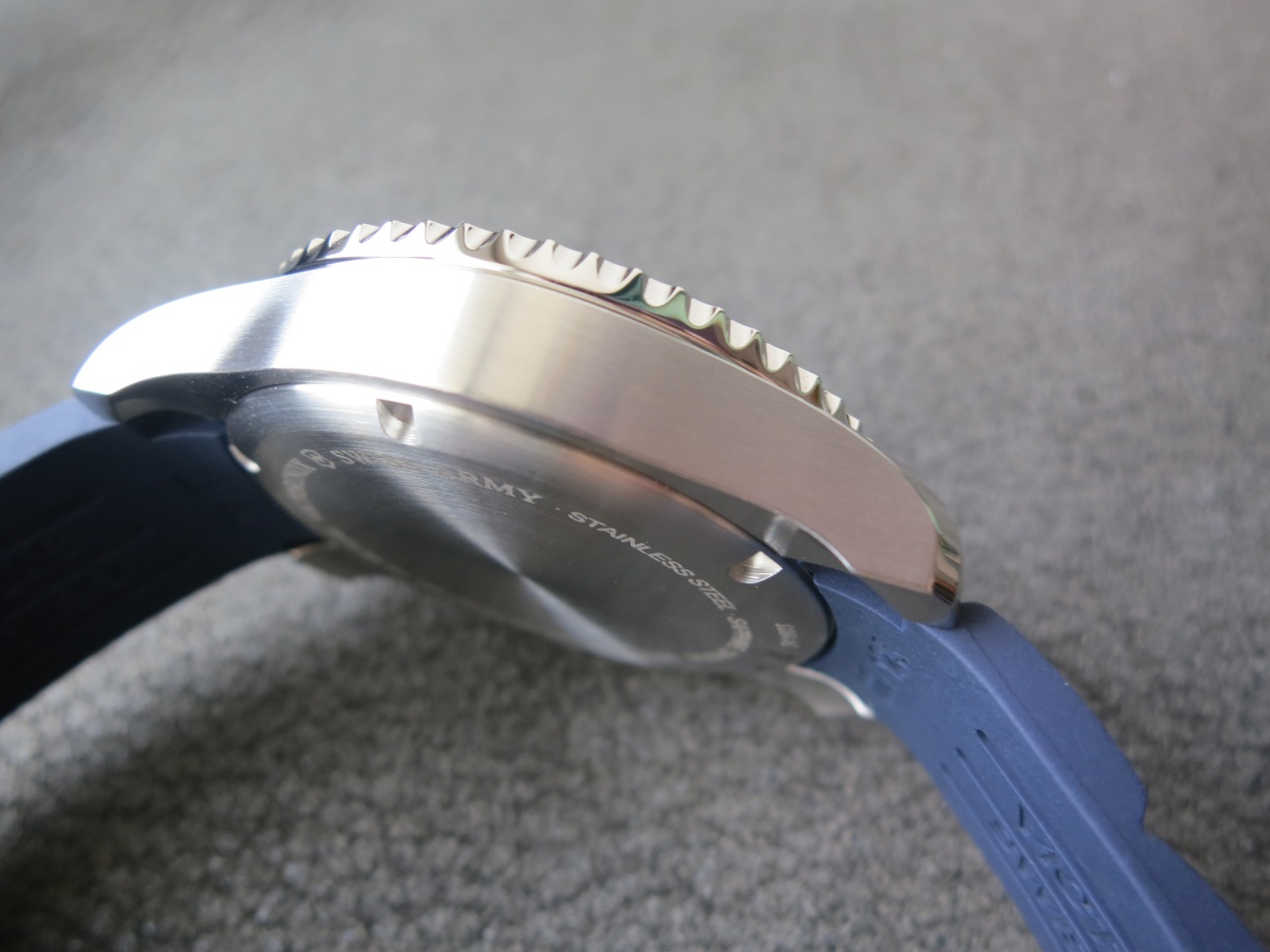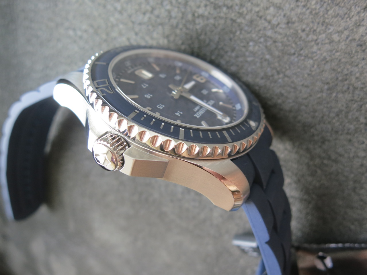 Кварцевые швейцарские часы на калибре Ronda 715 с индикацией даты из коллекции Maverick. Функция индикации заряда (EOL). Накладные цифры и метки. Вращающийся в одном направлении безель с эмалевым покрытием, устойчивым к воздействию UV-лучей. Завинчивающаяся задняя крышка. Люминесцентное покрытие на стрелках. Сапфировое стекло с тройным антибликовым покрытием. Стальной корпус с защитой заводной головки диаметром 43 мм. Каучуковый ремешок. Водозащита 100WR. Производство: Швейцария. Плановая замена батарейки в феврале 2022 года.