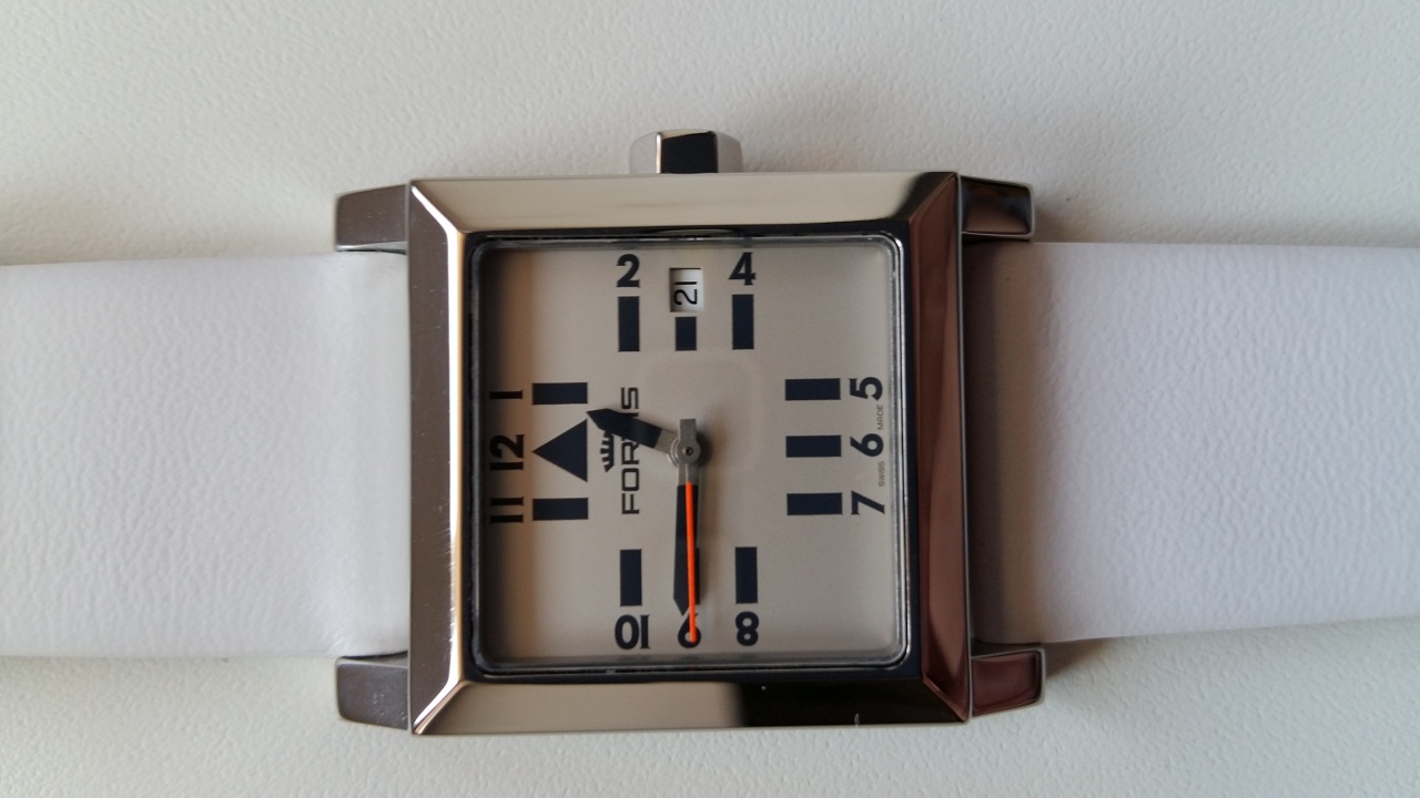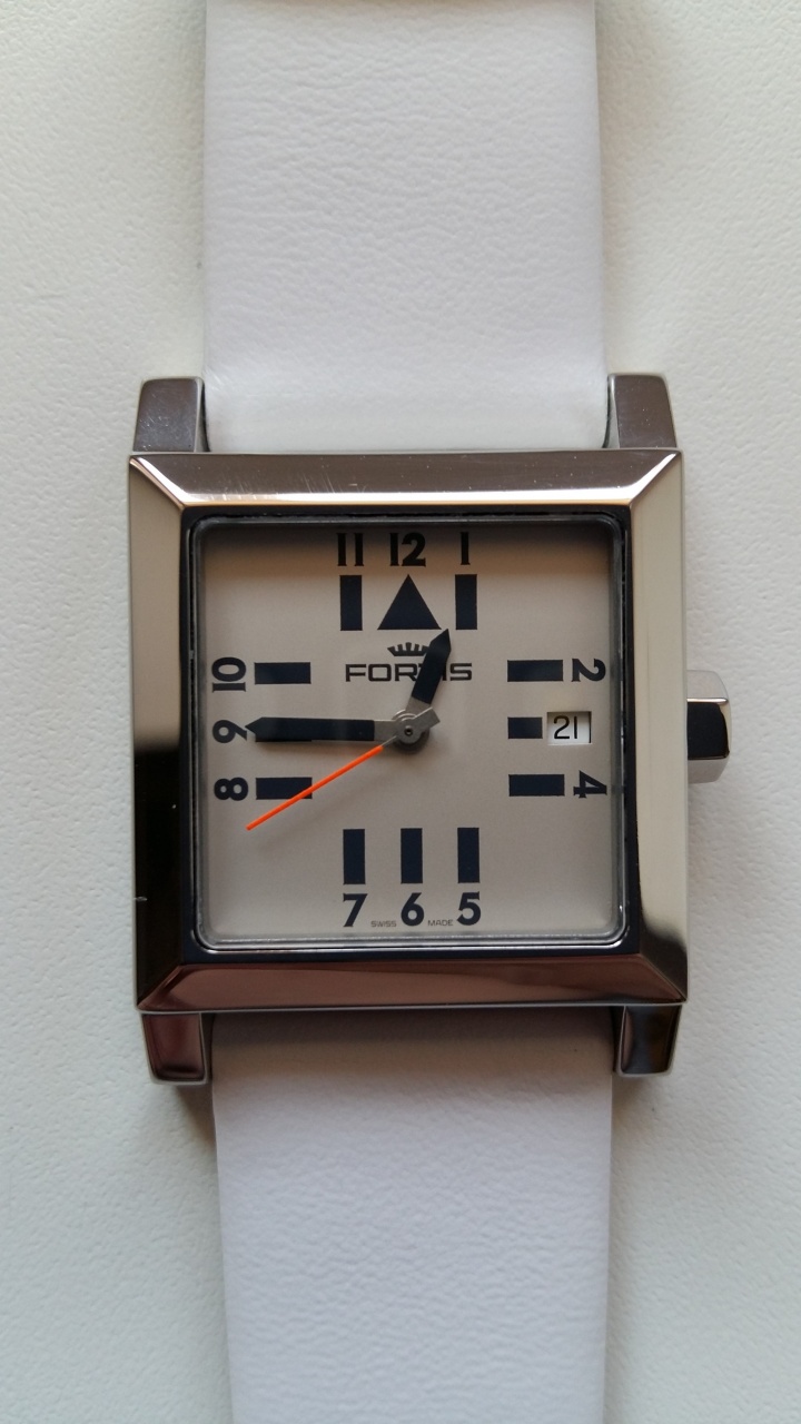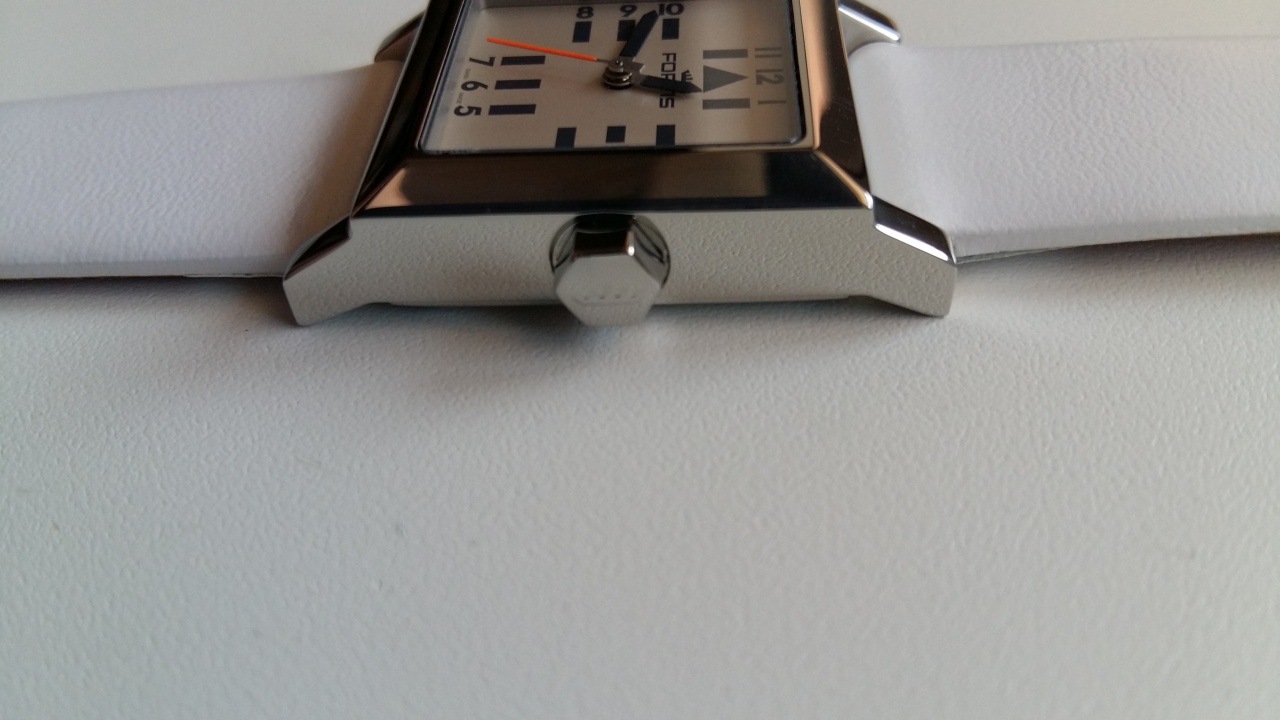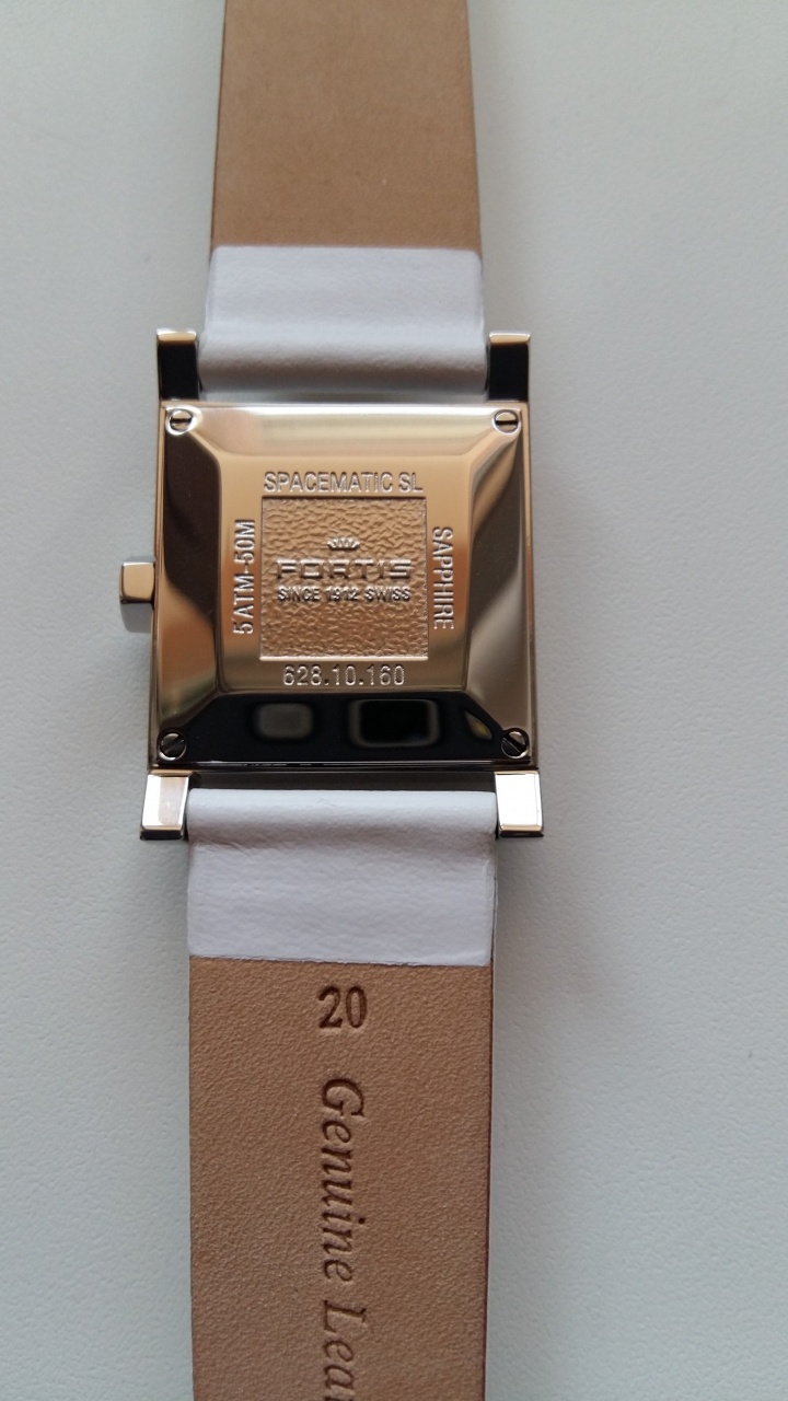 К корпусу крепится новый кожаный ремешок белого цвета из телячьей кожи (родной силиконовый заменен сразу после приобретения часов из-за непрезентабельного вида).