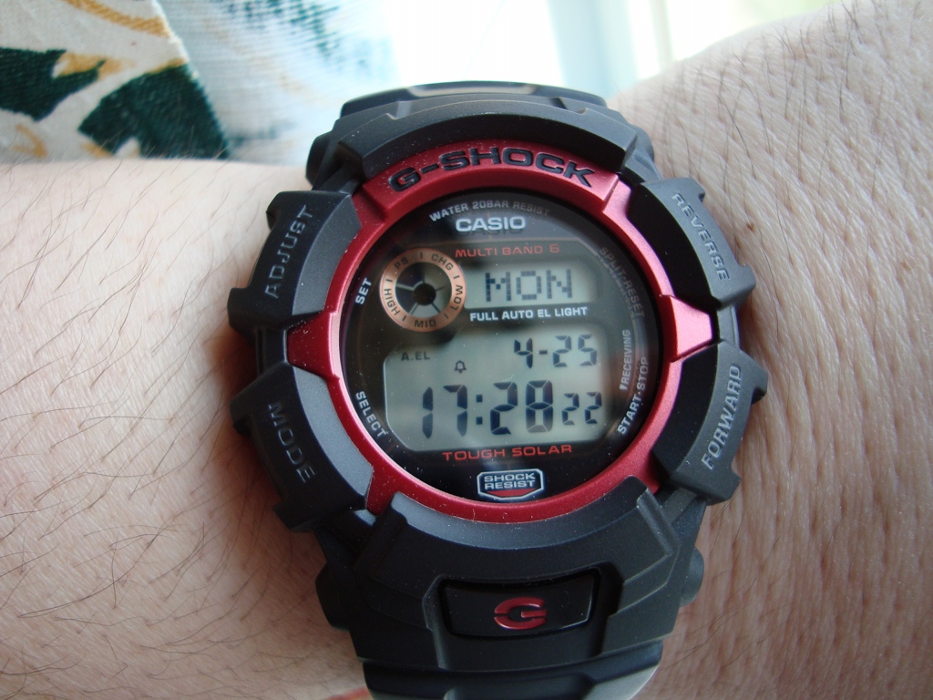 Теперь немного о критериях выбора. Меня очень заинтересовала технология Tough Solar, поскольку благодаря ей часы становятся автономными, всегда можно их подзарядить, не требуется замена батарейки. Поэтому я для себя определил это, как первостепенное требование при выборе часов. Следующими условиями выбора были: читаемость дисплея, отсутствие излишнего функционала для меня (поскольку я не рыбак и не садовод-огородник, то мне не нужны приливы и отливы и фазы луны; к тому же я не альпинист и не турист, поэтому мне ненужны альтиметр, барометр и термометр; при покупке часов я руководствуюсь принципом - не переплачивать за те функции, которые тебе не нужны) и, наконец, дизайн. У сына критерии выбора были с точностью до наоборот. Сначала дизайн, а потом всё остальное, за исключением Tough Solar (эта технология его не привлекла). Результатом выбора стали для меня GW-2300F-4ER, а для сына G-9000R-4DR "MUDMAN" Rescue Orange. Единственное, что мне пришлось пойти на компромисс при выборе часов - это наличие радиосинхронизации.
